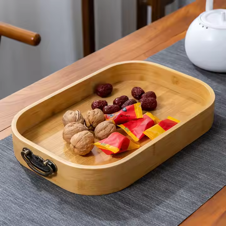 ถาดไม้ทรงสี่เหลี่ยมผืนผ้าแบบชนบททำด้วยมือปรับขนาดได้ตามต้องการสำหรับตกแต่งบ้านและห้องครัวด้วยงานฝีมือรูปพระจันทร์เสี้ยว