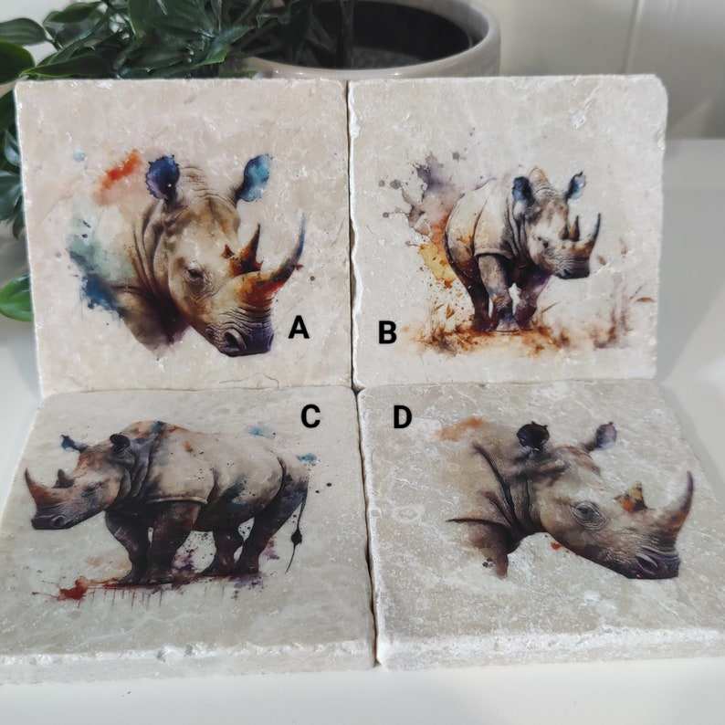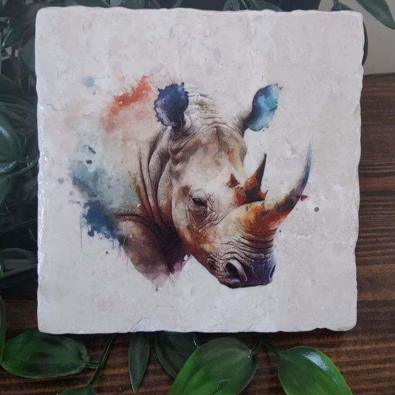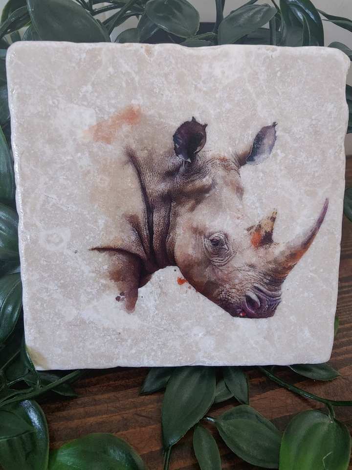ที่รองแก้วหินอ่อนแรดแบบชนบทจานรองแก้วลายสัตว์ซาฟารีสัตว์แรดไม่เหมือนใครของขวัญตกแต่งบ้าน