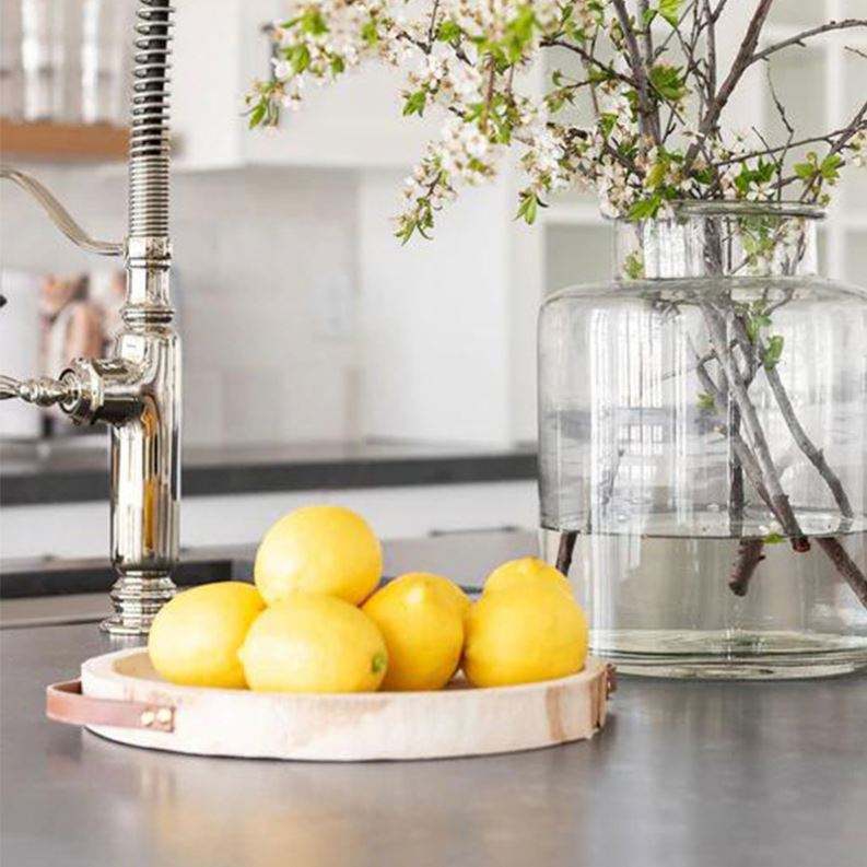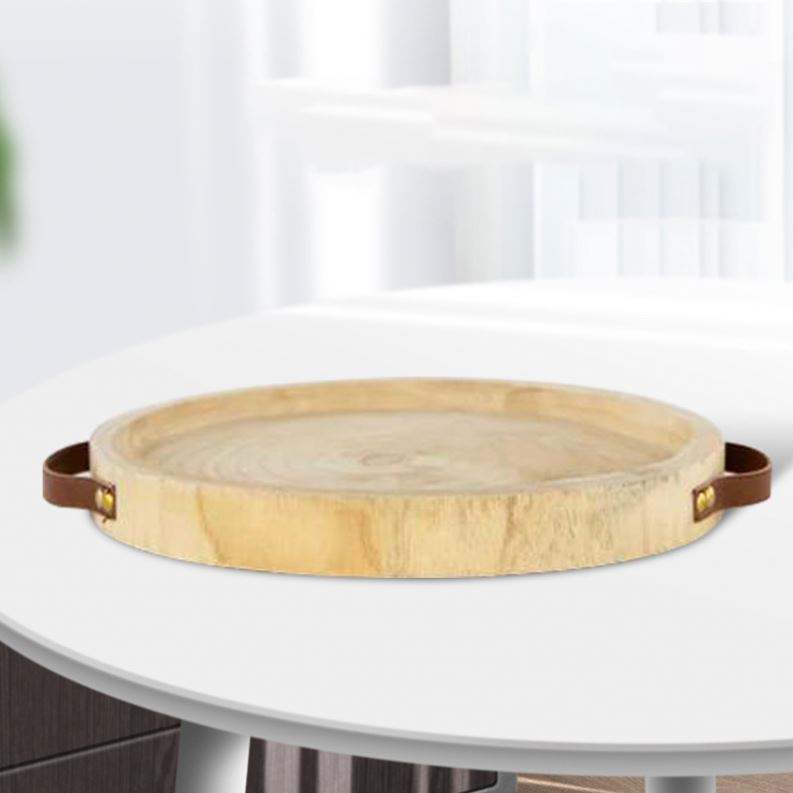 ถาดไม้สำหรับเสิร์ฟแบบเรียบง่ายถาดไม้สำหรับบ้านไร่จานขนมทรงกลมแบบชนบท