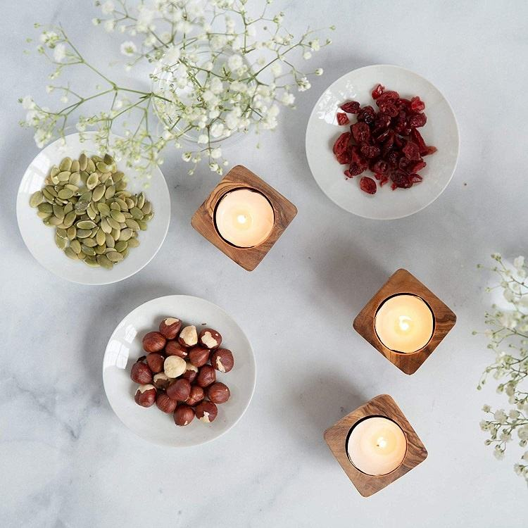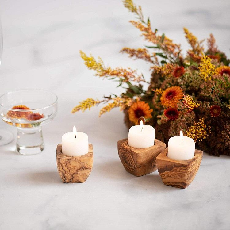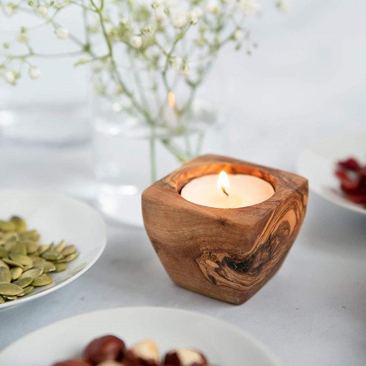 เชิงเทียนไม้มะกอกแบบเรียบง่ายสำหรับเทียนทีไลท์