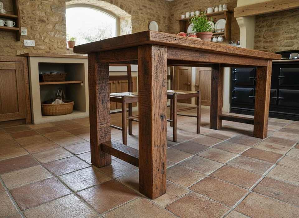 โต๊ะครัวไม้เนื้อแข็งสไตล์เรียบง่าย พร้อมพื้นผิวลายไม้ธรรมชาติ พื้นที่ใช้งานกว้างขวาง และโครงสร้างแข็งแรงทนทาน