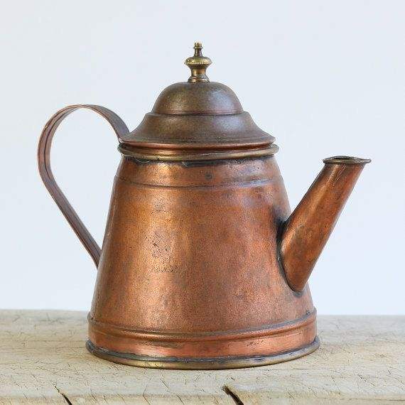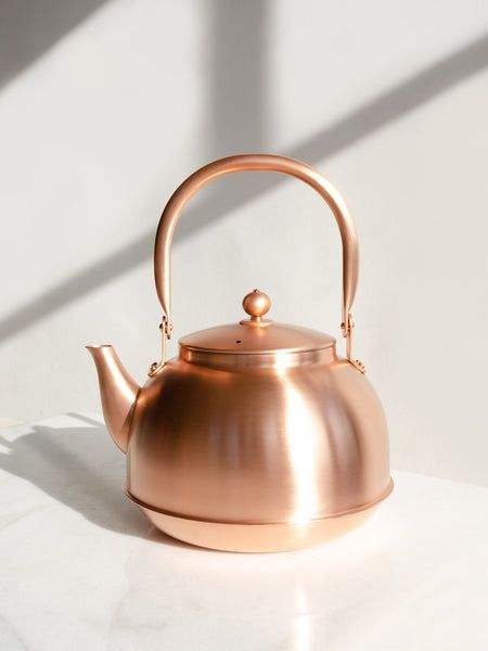 กาต้มน้ำทองแดงสไตล์เรียบง่ายพร้อมด้ามจับทนทานสำหรับชงชา ต้มน้ำ และตกแต่งบ้าน