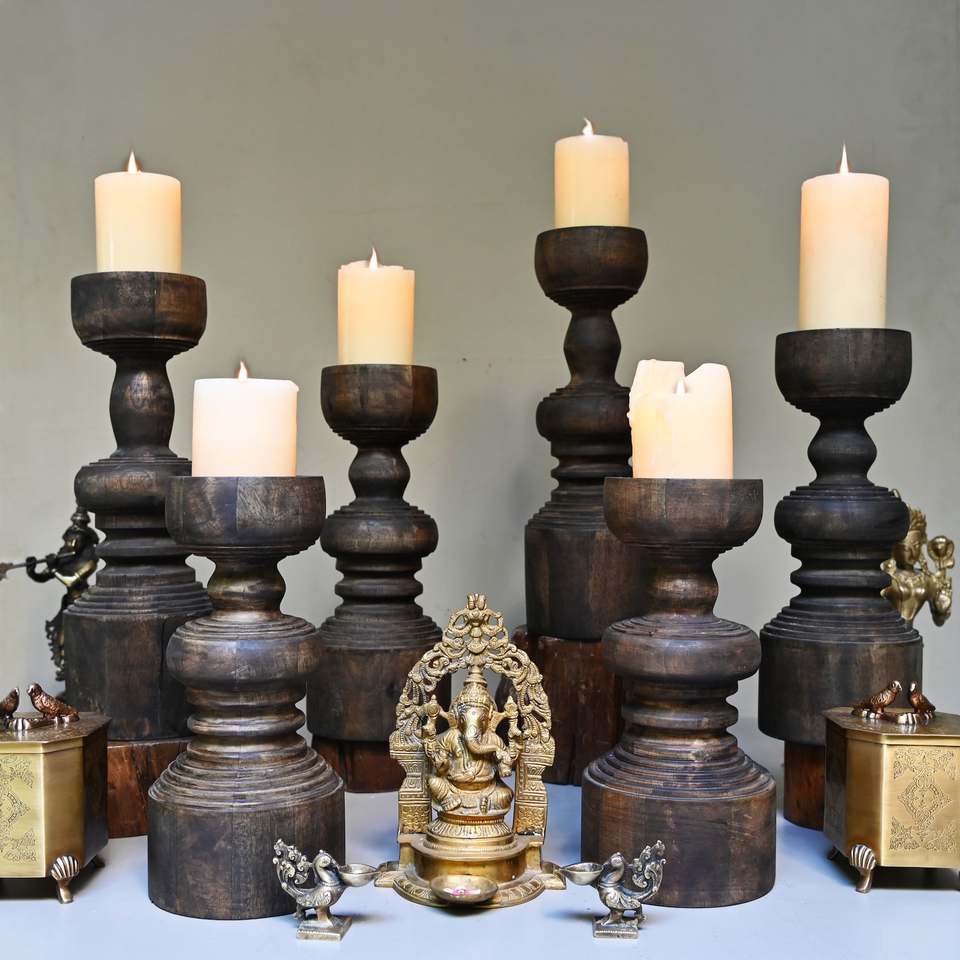 เชิงเทียนทำจากไม้ที่ทำด้วยมือหรูหราทนทานสำหรับตกแต่งงานแต่งงานกลางและติดตั้งตกแต่งภายในบ้านตามเทศกาล