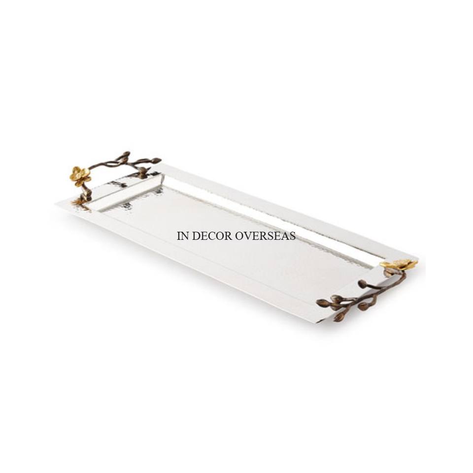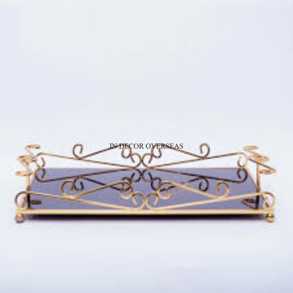 กรอบลวดโลหะชุบทองดีไซเนอร์แนววินเทจแนวรัสติกสำหรับวางกลางโต๊ะทรงสี่เหลี่ยมผืนผ้าถาดเสิร์ฟของตกแต่งโต๊ะ