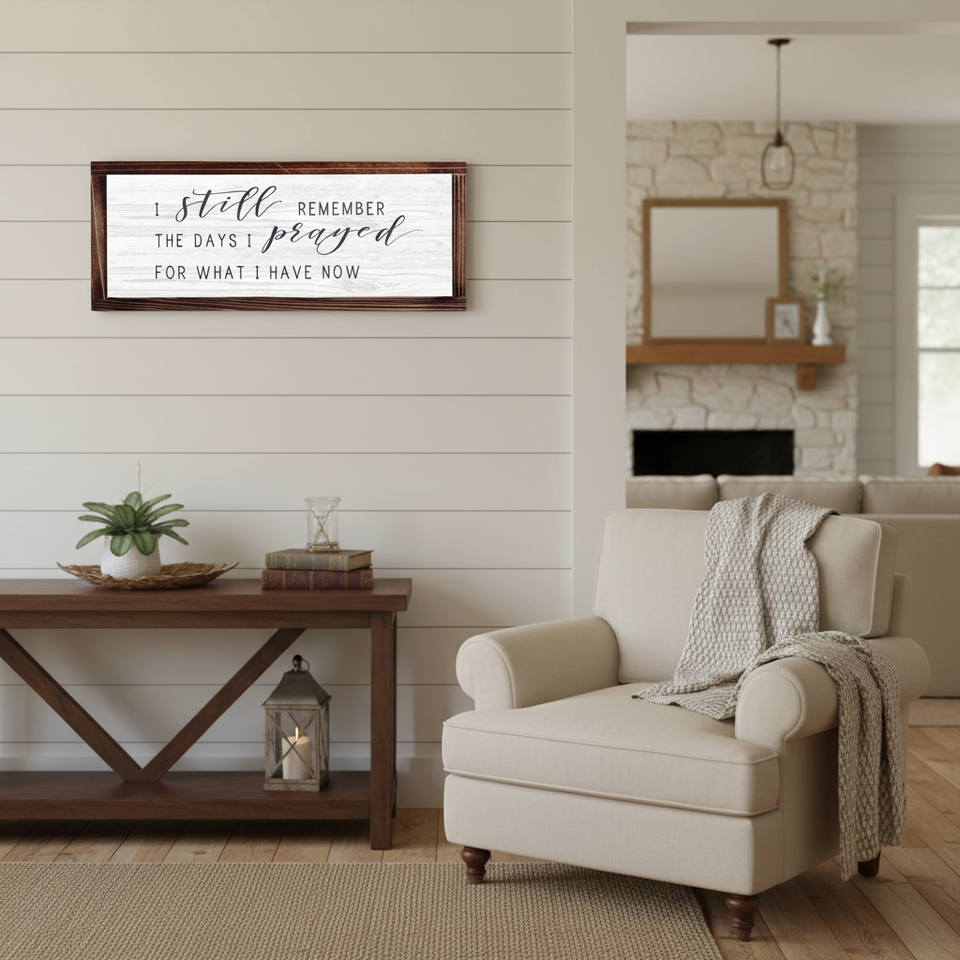 ป้ายไม้ติดผนังสไตล์วินเทจแบบชนบท ตกแต่งบ้านสไตล์ฟาร์มเฮาส์ - "ฉันยังคงคิดถึงวันที่ฉันอธิษฐาน" งานศิลปะไม้แขวนผนังสไตล์เรโทร
