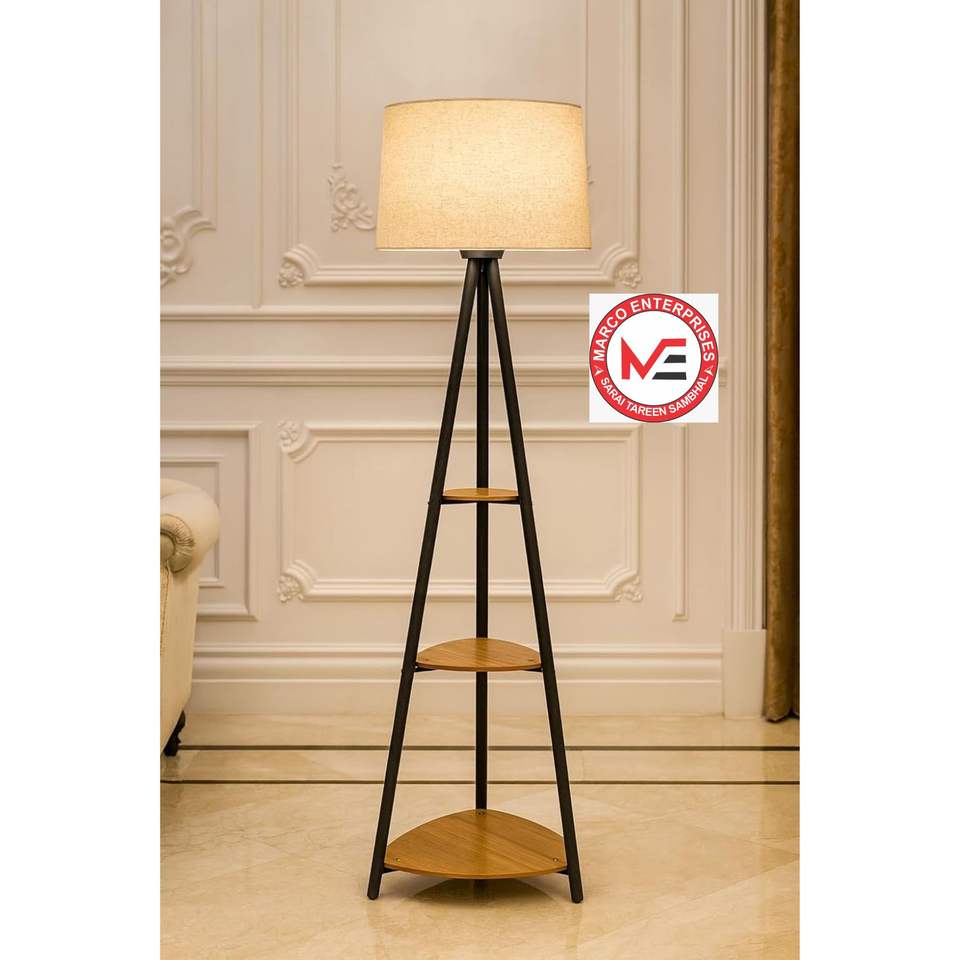 โคมไฟสไตล์เรียบหรู โครงโลหะสีดำ แต่งไม้ โป๊ะผ้าสีเบจ ฐานสีน้ำตาลคลาสสิก สำหรับสำนักงาน ขายส่ง