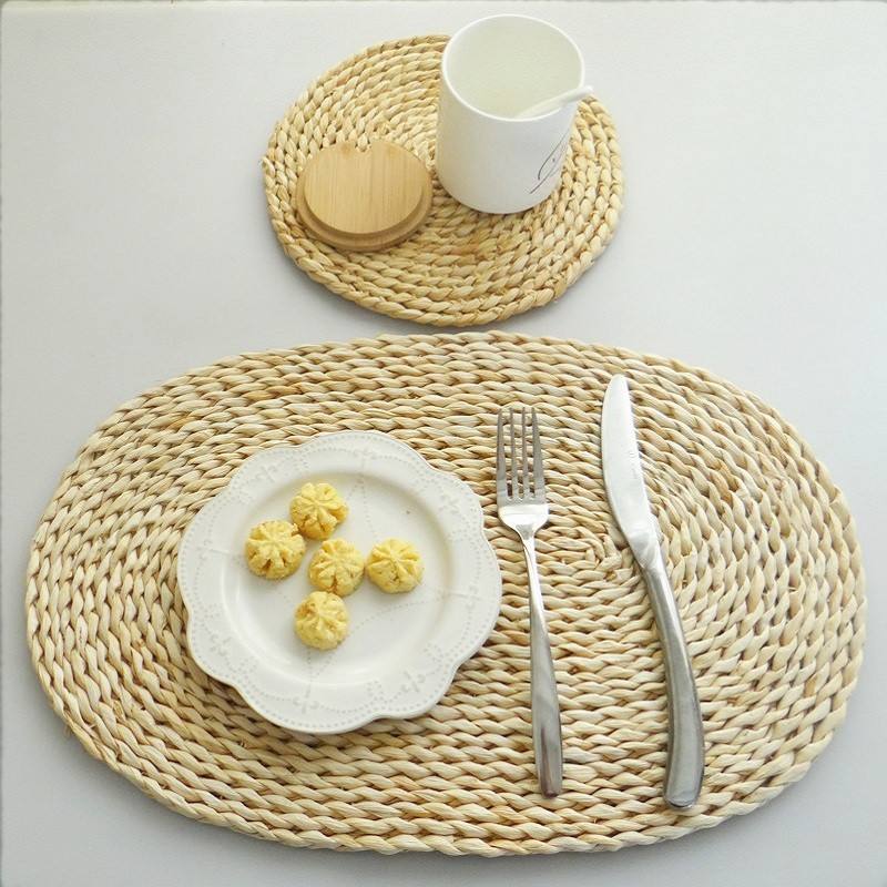 แผ่นรองน้ำผักตบชวาแบบชนบทแผ่นรองจานที่เป็นมิตรกับสิ่งแวดล้อมสำหรับเพิ่มความอบอุ่นความงามตามธรรมชาติสำหรับการรับประทานอาหารสมัยใหม่ในงานแต่งงาน