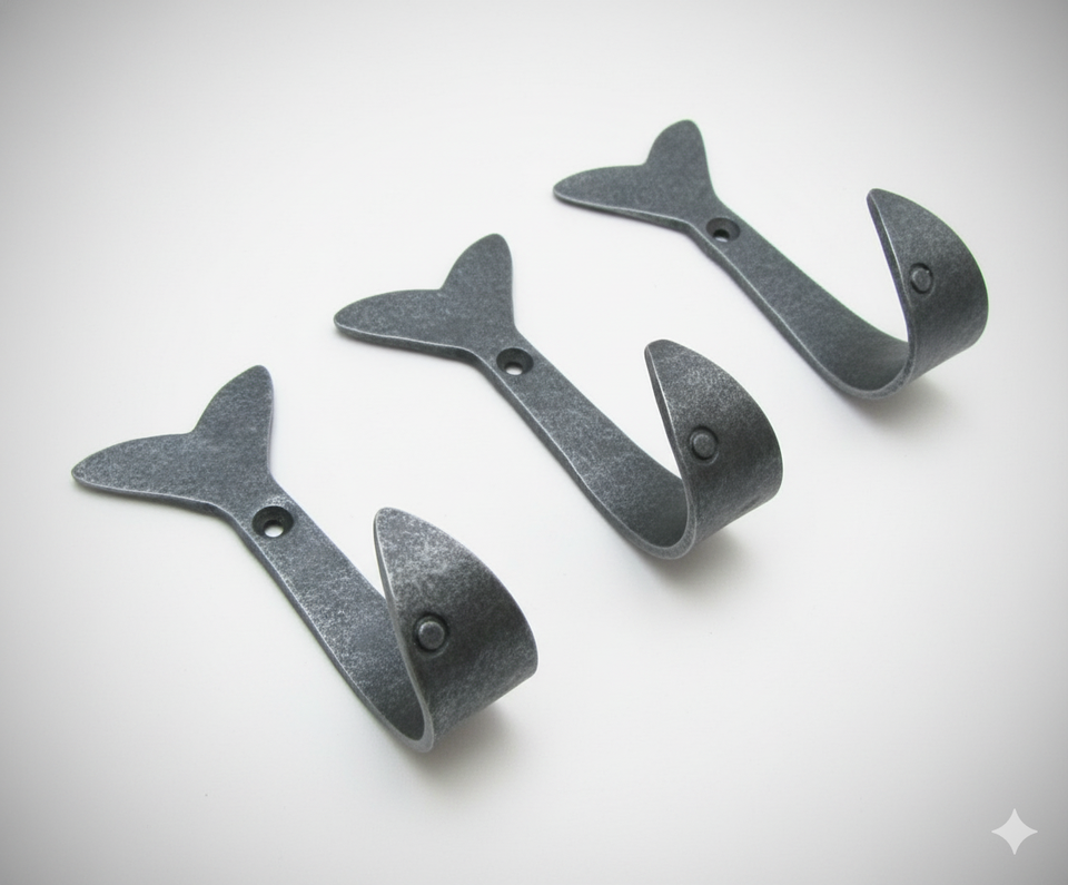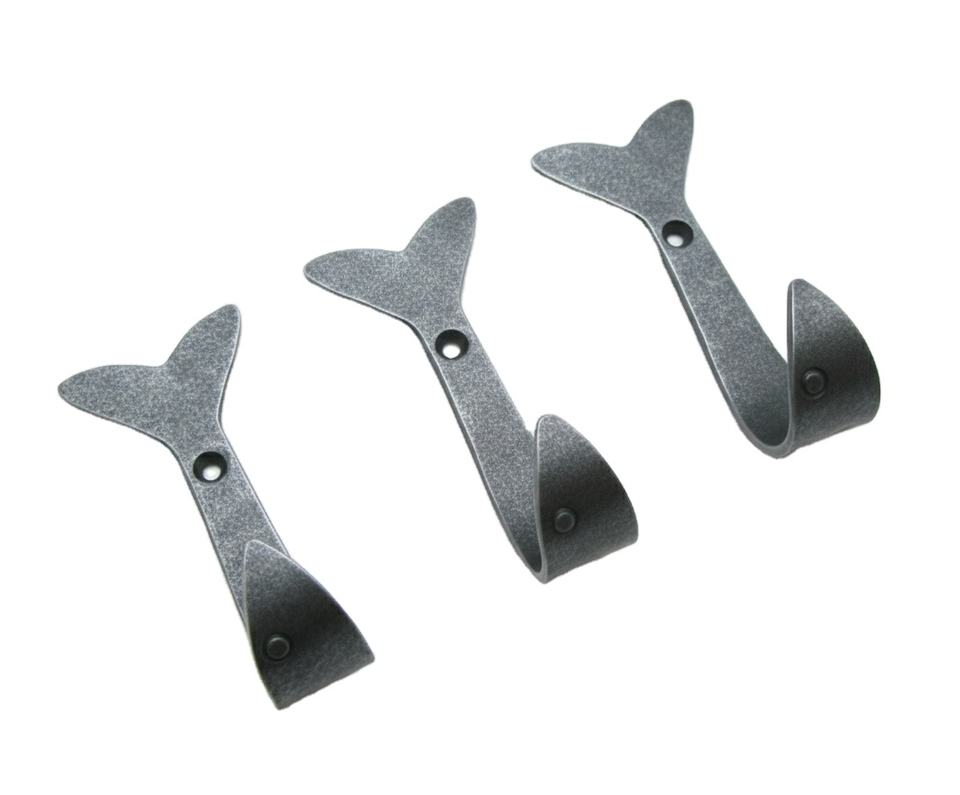 ชุดตะขอแขวนผนังรูปหางวาฬสไตล์เรโทร 3 ชิ้น ตกแต่งบ้านสไตล์ทะเล ทำจากเหล็กดัด แข็งแรง ทนทาน สีเทาโบราณ เหมาะสำหรับแขวนเสื้อผ้า ผ้าขนหนู ใช้ในโรงแรม
