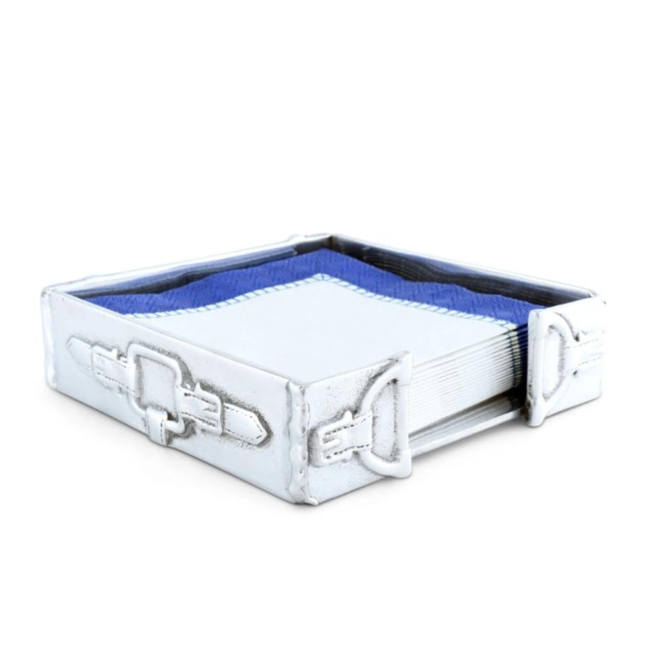 ที่ใส่กระดาษเช็ดปากโลหะสีขาวแบบเรียบง่ายตัวจัดระเบียบทรงสี่เหลี่ยมพร้อมหัวเข็มขัดดีไซน์สำหรับห้องครัวรับประทานอาหารของตกแต่งบ้าน