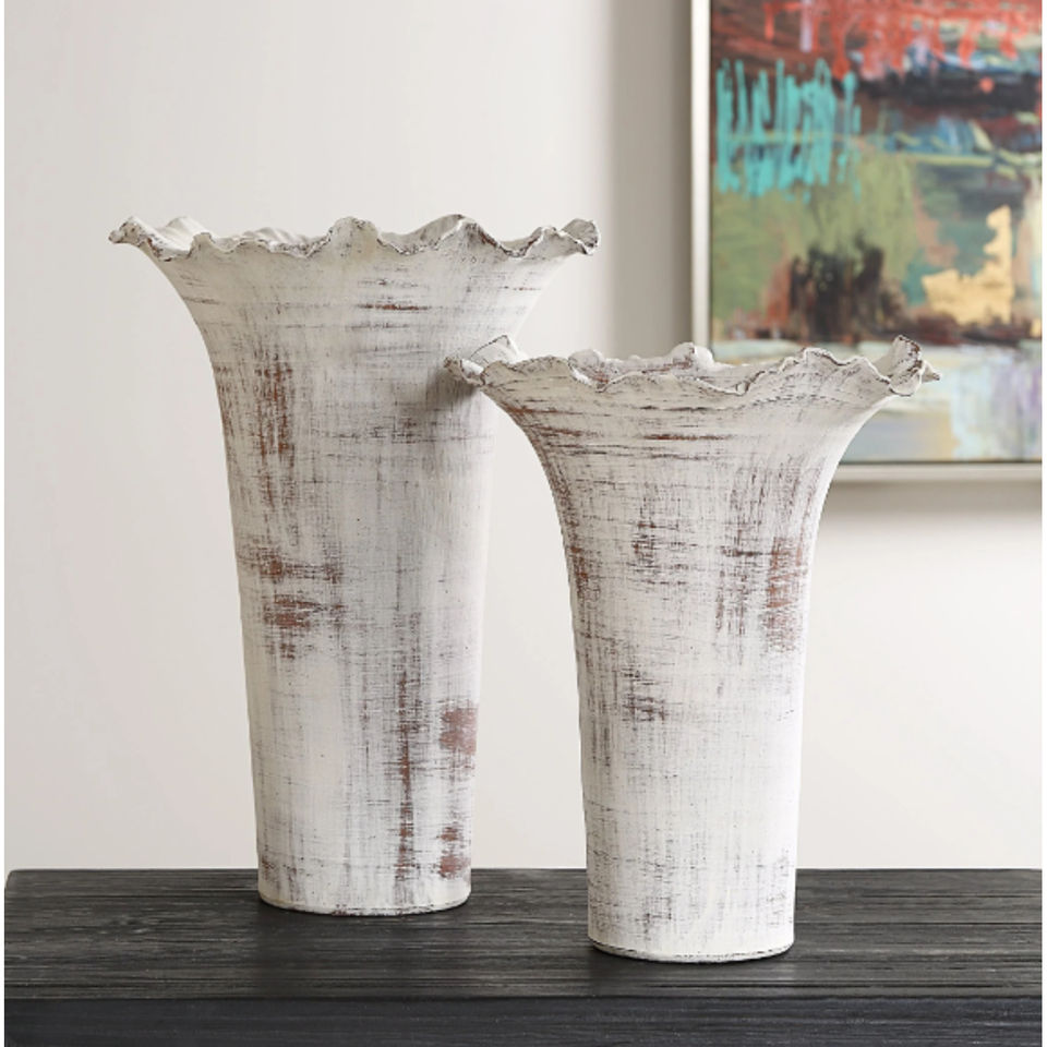 แจกันดอกไม้ทรงสูงสีขาวสไตล์เรียบง่าย ตกแต่งบ้าน แจกันทรงแตรสไตล์วินเทจ แจกันตั้งพื้นทันสมัยสำหรับห้องนั่งเล่นและทางเข้าโรงแรม