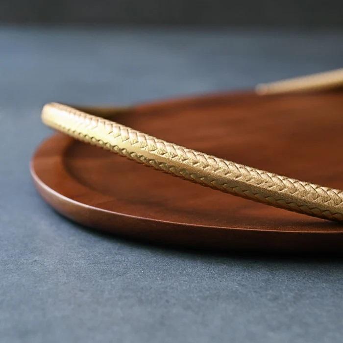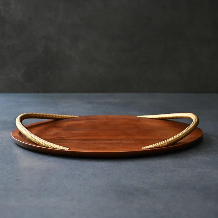 ถาดไม้วอลนัทด้ามจับโลหะเป็นมิตรกับสิ่งแวดล้อมทันสมัยสำหรับบ้านถาดเก็บผลไม้ไม้อะคาเซีย