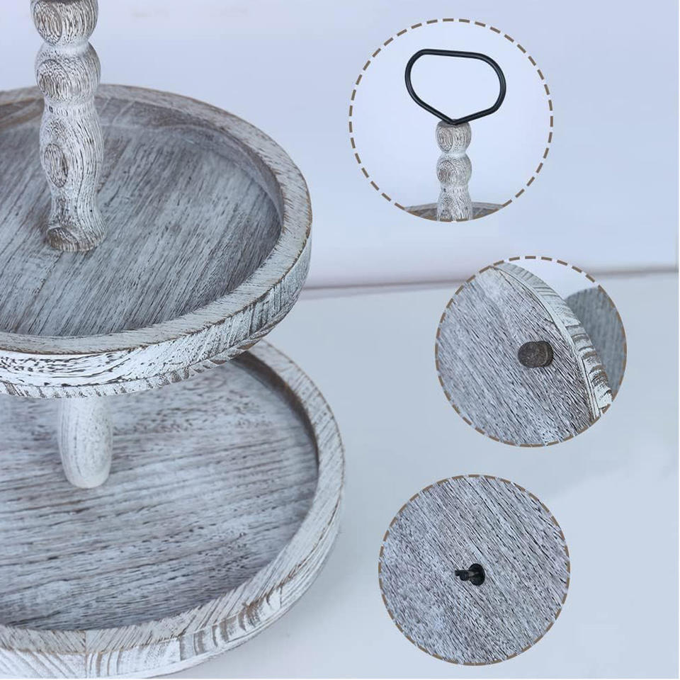 ถาดไม้แบบสองชั้นสำหรับตกแต่งในฟาร์มถาดไม้ทรงกลม2ชั้นถาดเค้กขนมหวานผลไม้แบบไม่เหมือนใคร
