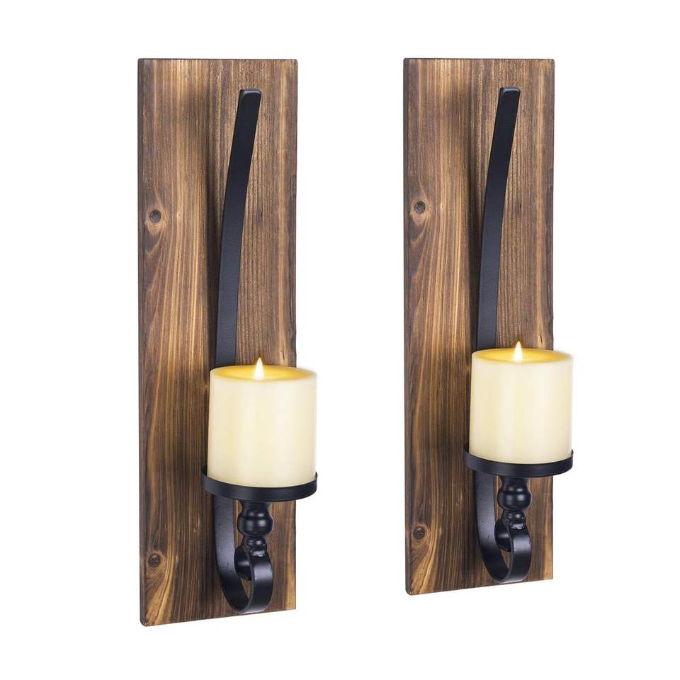เชิงเทียนไม้แนวชนบทติดผนังในร่มโถงทางเดินห้องนั่งเล่นตกแต่งด้วยมือสไตล์หรูหรา