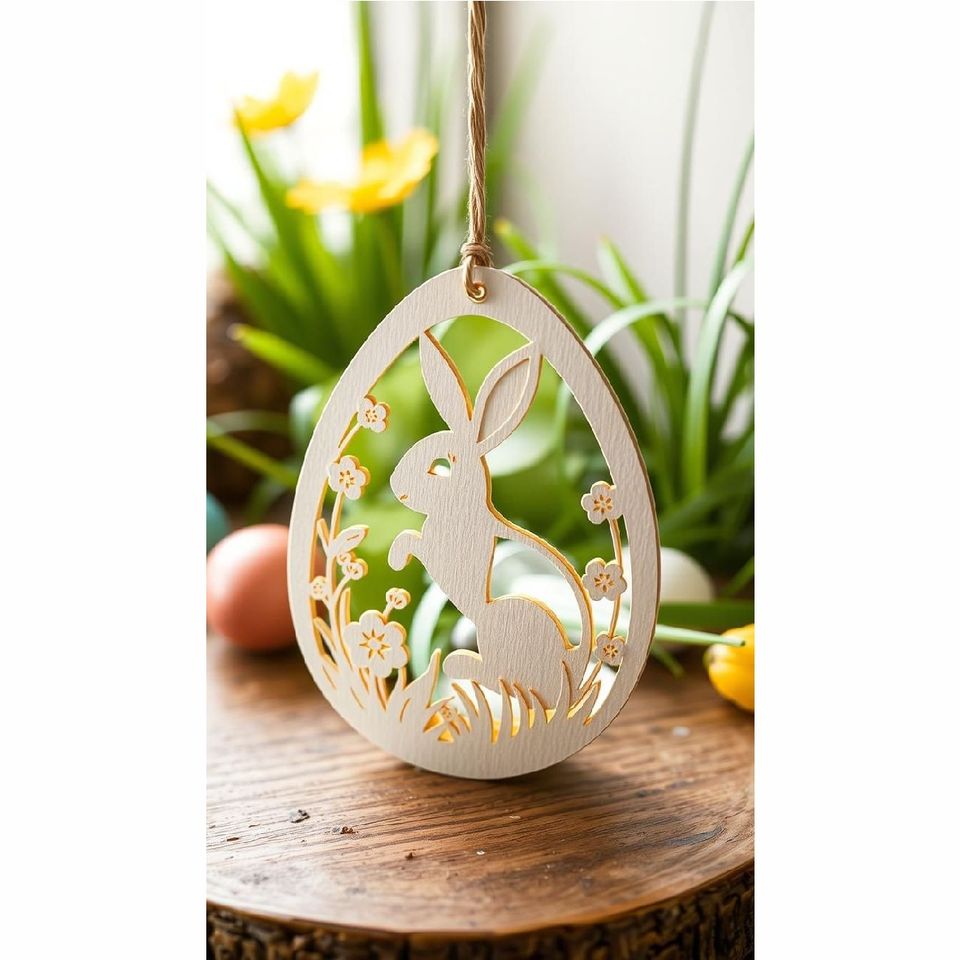เครื่องประดับตกแต่งรูปกระต่ายไข่อีสเตอร์ไม้สไตล์เรียบง่าย ตัดด้วยเลเซอร์ ป้ายแขวนรูปกระต่ายไม้ สำหรับตกแต่งวันหยุดฤดูใบไม้ผลิ DIY ของตกแต่งบ้าน