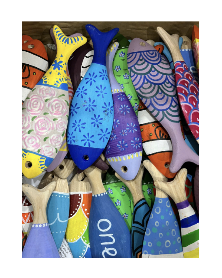 การตกแต่งผนังด้วยไม้รูปปลาทำด้วยมือสำหรับการออกแบบบ้านริมทะเลหรือบ้านริมทะเลสาบ