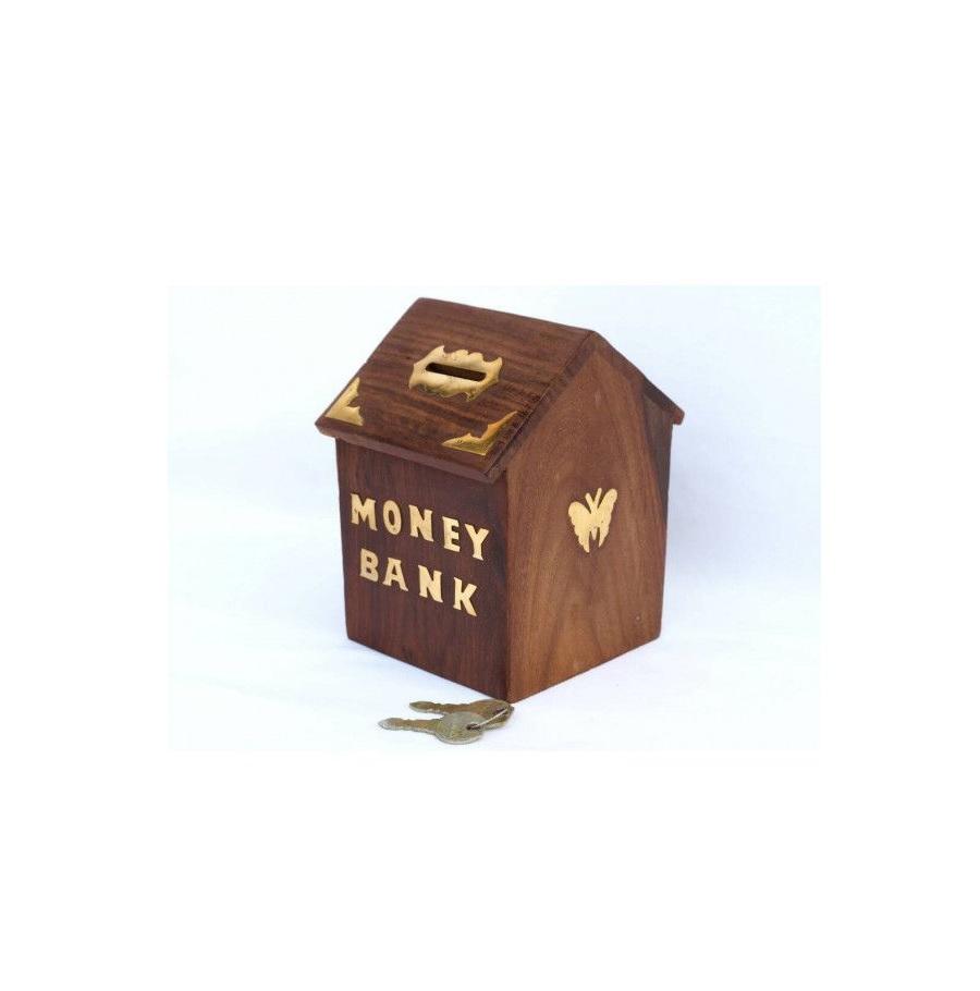 กล่องออมสินไม้สไตล์เรโทร กล่องสมบัติโบราณพร้อมกุญแจ กล่องใส่เหรียญไม้ตกแต่ง สำหรับของขวัญส่งเสริมการขายและของตกแต่งบ้าน