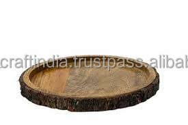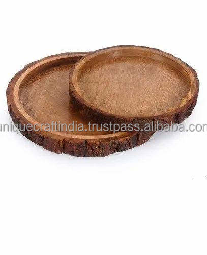 จานเสิร์ฟทำจากไม้แนวชนบทพร้อมขอบเปลือกไม้ธรรมชาติ | เครื่องใช้บนโต๊ะอาหารที่ทนทานและเป็นมิตรกับสิ่งแวดล้อมสำหรับการรับประทานอาหารการจัดเลี้ยงและกิจกรรม