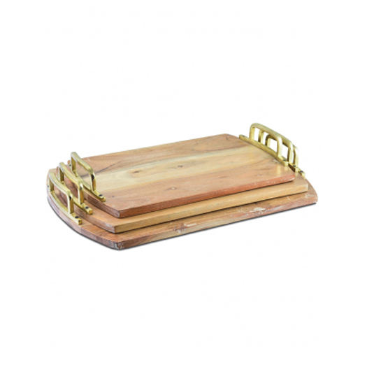 ถาดเสิร์ฟอาหารทำจากไม้แนวชนบทพร้อมที่จับโลหะสำหรับตกแต่งโต๊ะกาแฟ/บัตเลอร์