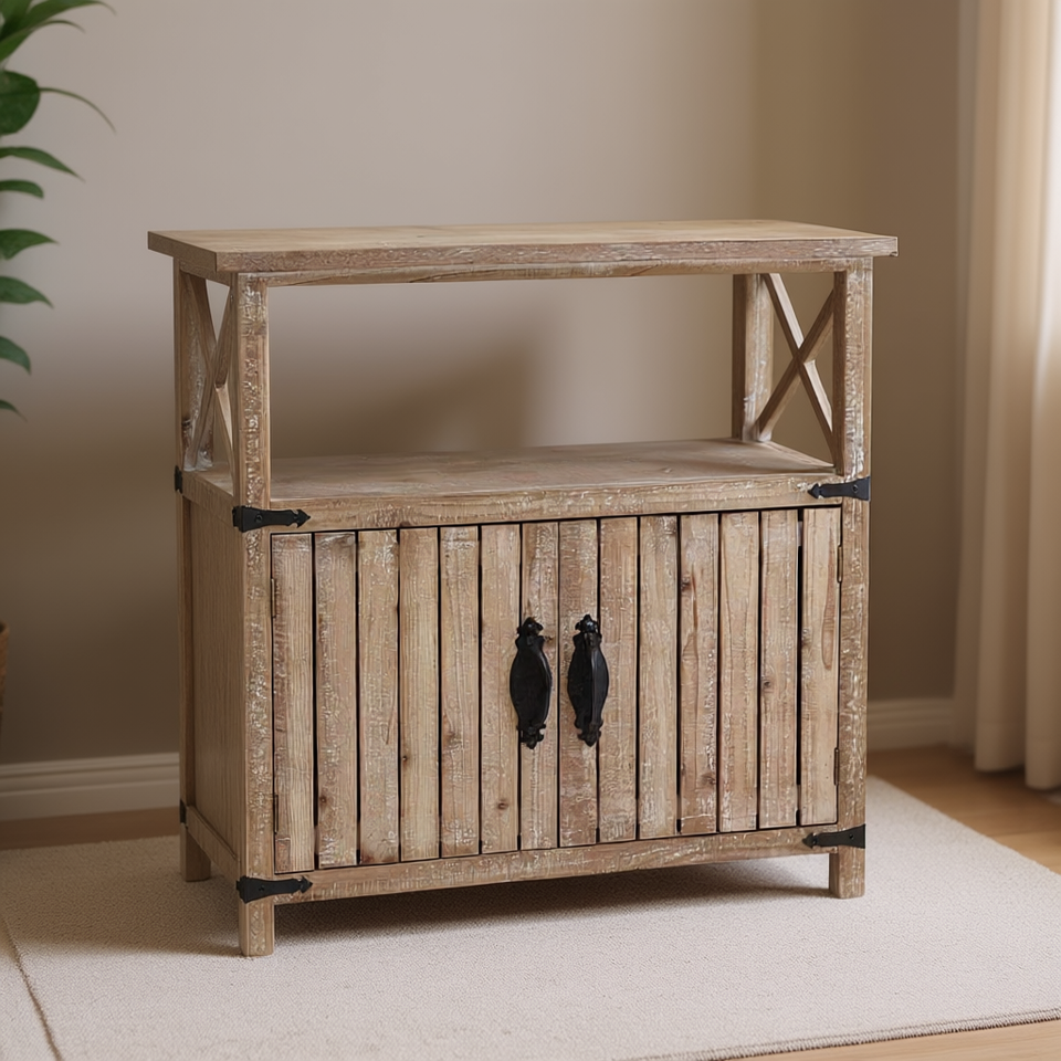ตู้เก็บของไม้สไตล์ชนบทพร้อมบานประตูและชั้นวางของ ขนาด 31.5 นิ้ว กว้าง x 31.75 นิ้ว สูง ตู้ไซด์บอร์ดสำหรับห้องนั่งเล่นและห้องครัว