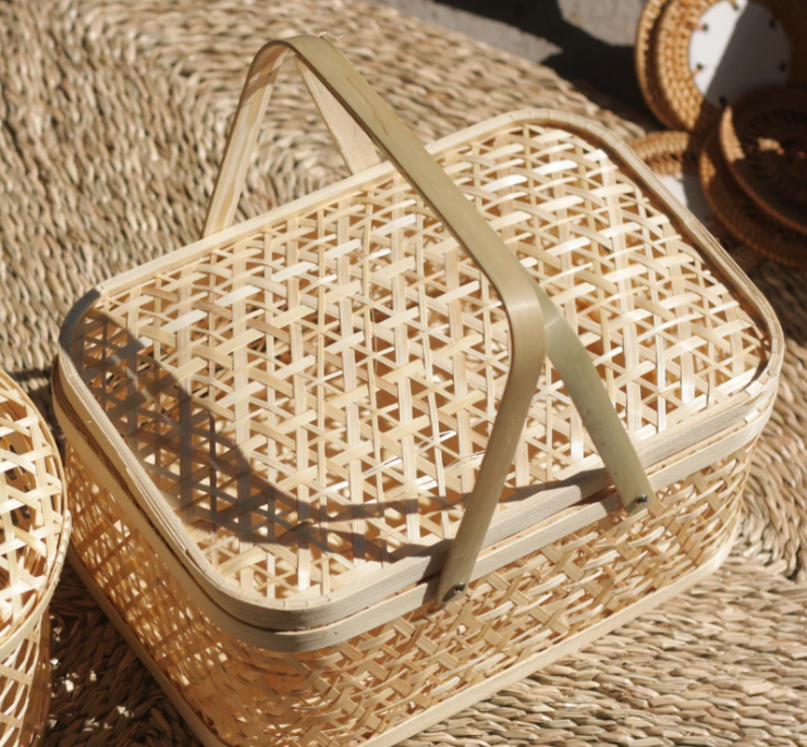 ตะกร้าไม้ไผ่สานแบบเรียบง่ายพร้อมที่จับและฝาปิดที่ปลอดภัยสำหรับการจัดระเบียบในบ้านผลไม้หรือของขวัญที่ไม่เหมือนใครจากเวียดนาม