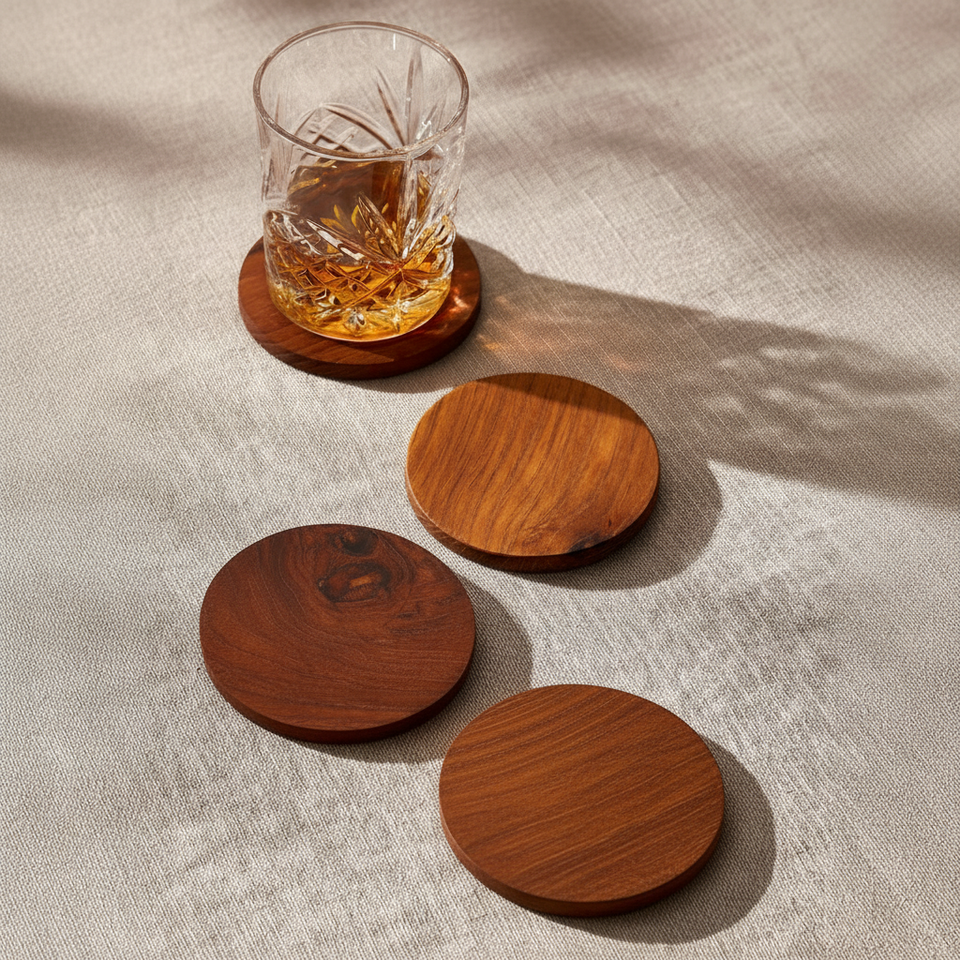 ที่รองแก้วไม้สำหรับบ้านไร่แบบเรียบง่ายทำจากไม้ธรรมชาติพร้อมพื้นผิวกันลื่นเหมาะสำหรับงานเลี้ยงสังสรรค์ในครอบครัว