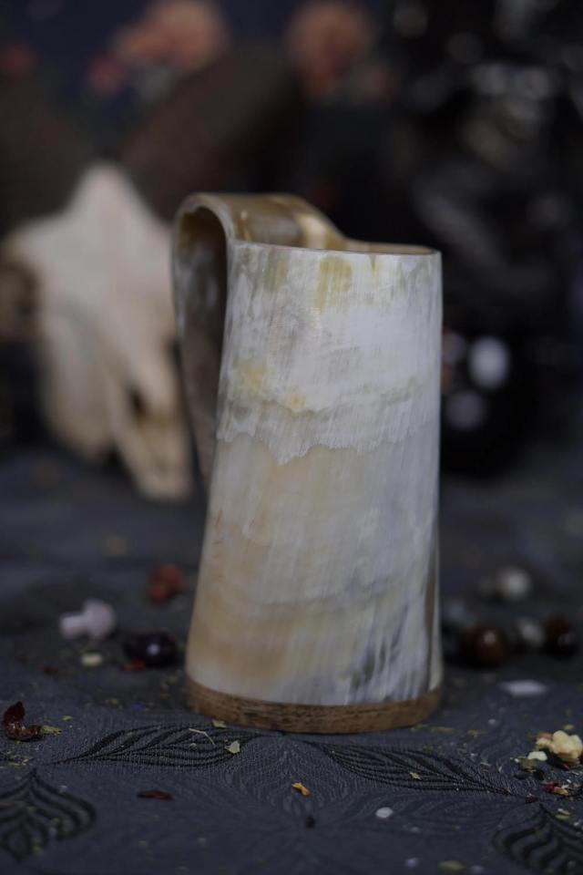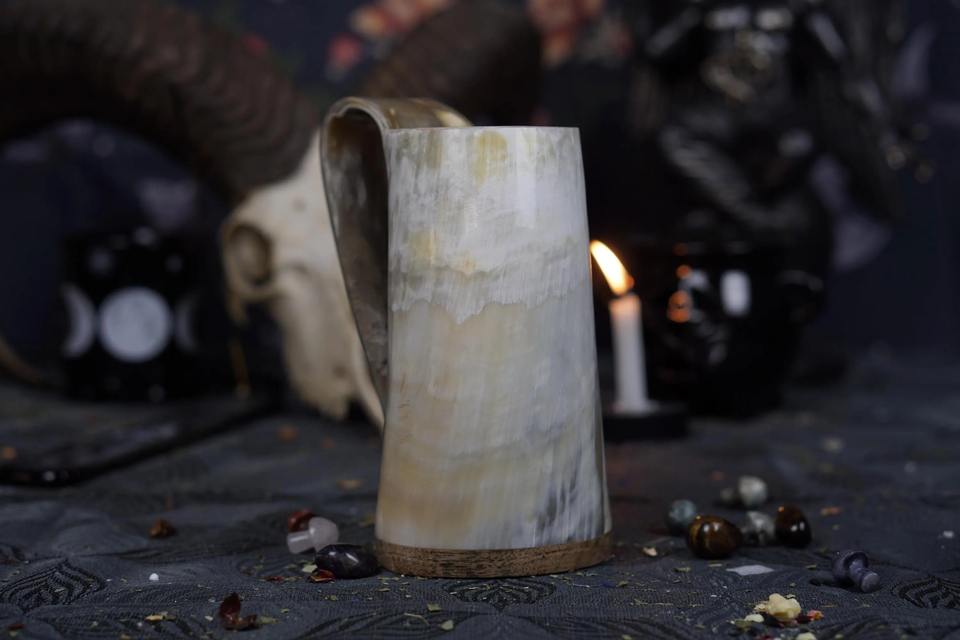 แก้วฮอร์นแบบเรียบง่ายสำหรับเบียร์ มี้ด เอล แก้วฮอร์นสไตล์ไวกิ้ง ทำด้วยมือสำหรับงานเทศกาลยุคกลางและบาร์ที่บ้าน