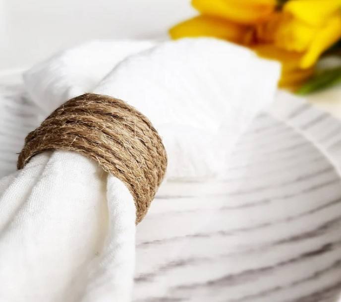แหวนรัดผ้าเช็ดปากแบบเรียบง่ายทำจากปอกระเจา ผ้าเช็ดปากทำมือจากปอกระเจา, แหวนรัดผ้าเช็ดปากจากผ้ากระสอบ