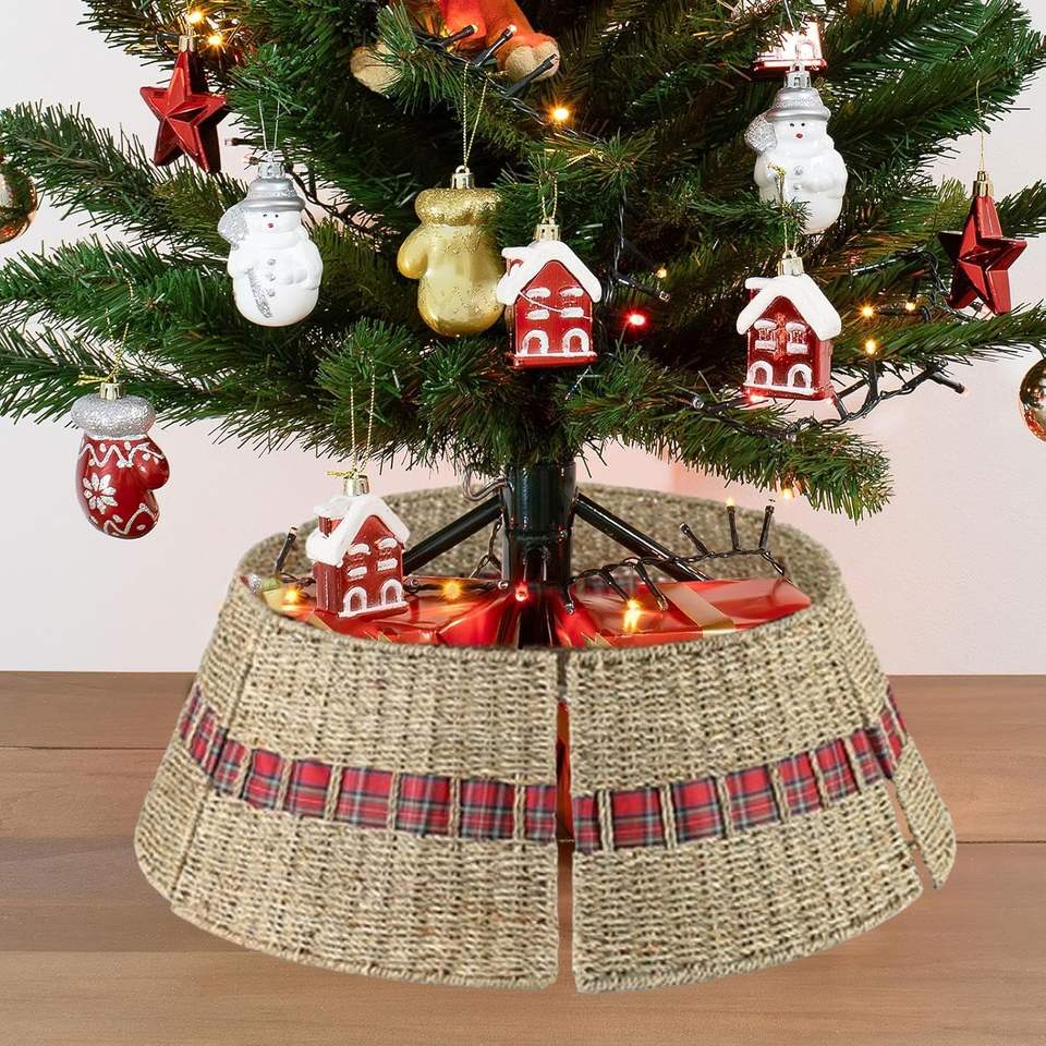 ปลอกคอต้นไม้โลหะแนวชนบทสำหรับต้นคริสต์มาสบ้านไร่ตกแต่งวันหยุดสมัยใหม่ตัวป้องกันฐานกลมแข็งแรงเหล็กสง่างาม