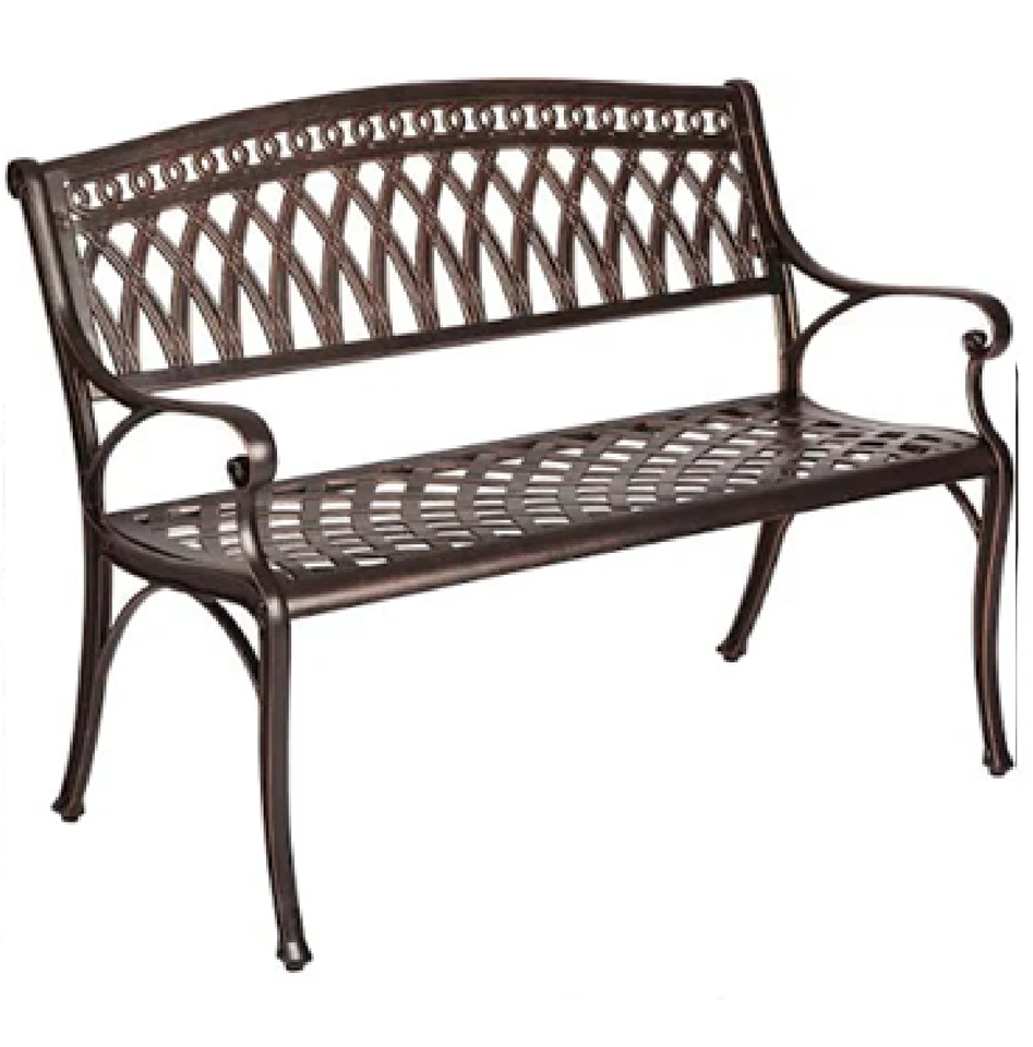 ม้านั่งโลหะสีบรอนซ์ลายทางแบบชนบทแขนเลื่อนดีไซน์ที่นั่งแบบหยักที่นั่งในสวนกลางแจ้งที่ทนทานมีจำหน่ายในราคาส่ง