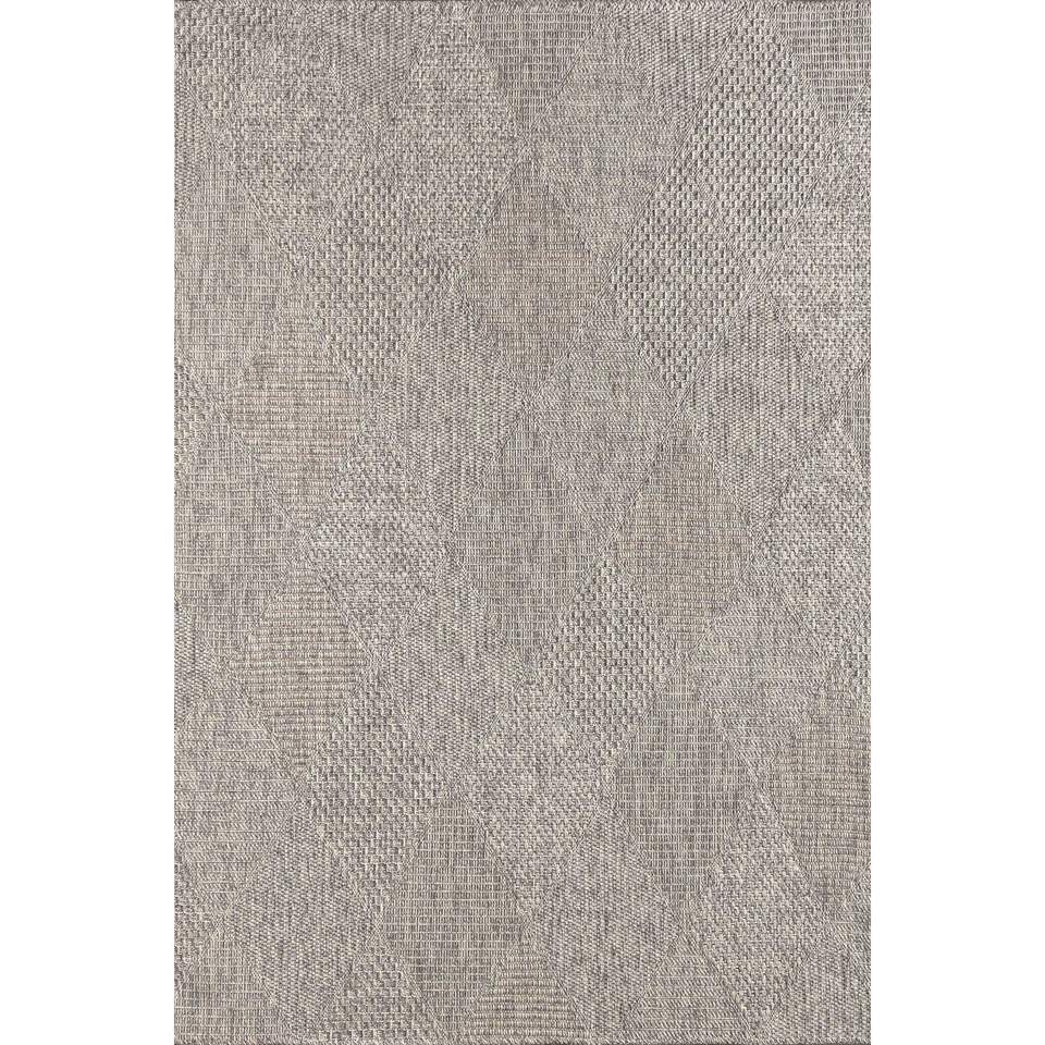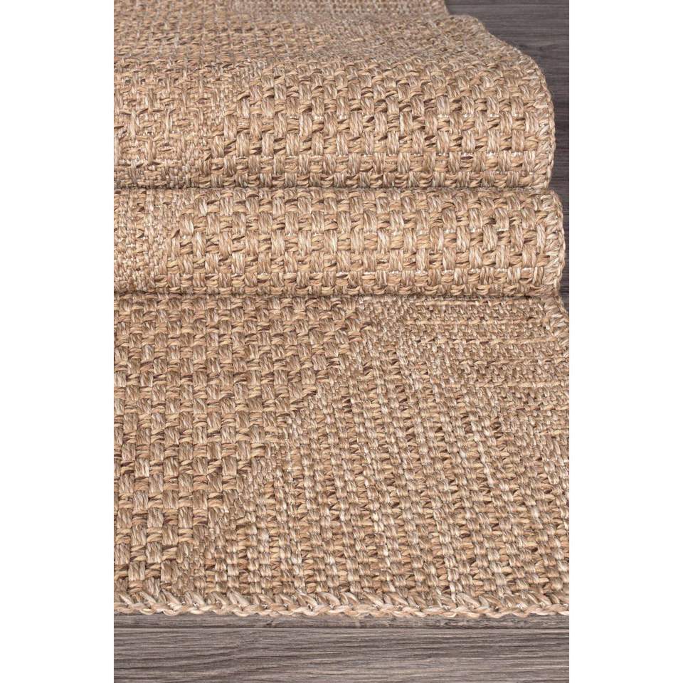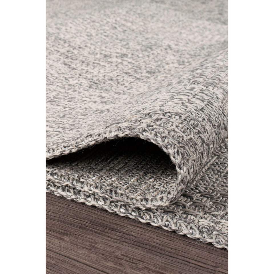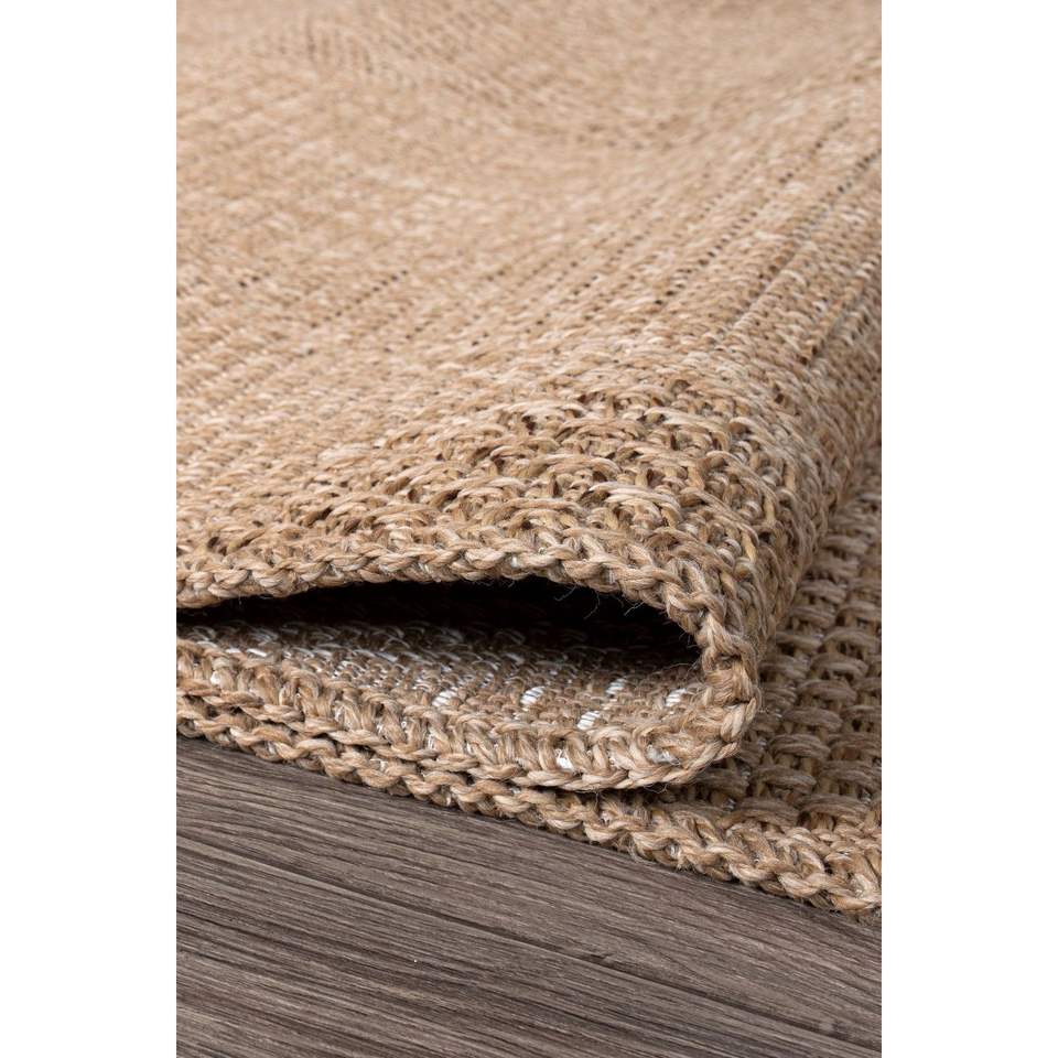 พรมทอแบบถักทอทันสมัย รุ่น Rusticana 3104 ผลิตด้วยเครื่องจักร ผสมผสานเส้นใยปอกระเจาธรรมชาติและฝ้าย ฐานทอแบบถัก ขนสั้น สีเทาเบจ ผลิตในประเทศตุรกี