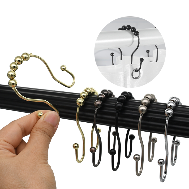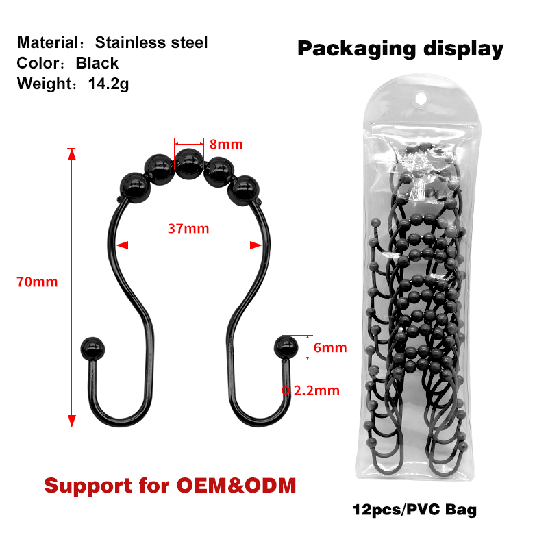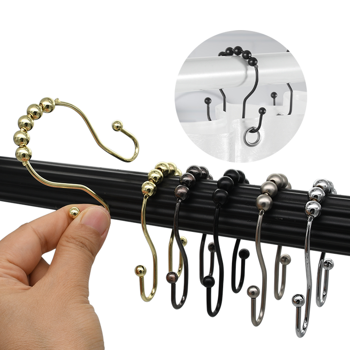 ตะขอแขวนม่านอาบน้ำกันสนิม สแตนเลสสองด้าน พร้อมวงแหวนเลื่อนได้เรียบเนียน 12 ชิ้น