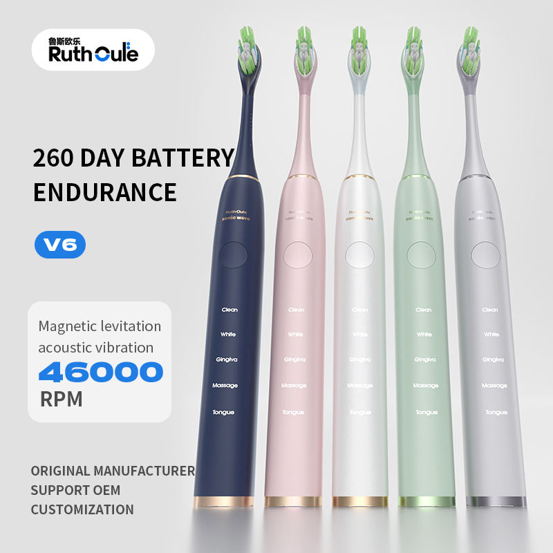 Ruthoule แปรงสีฟันคลื่นโซนิค V6ฟันขาว46000เฮิรตซ์ IPX7การสั่นสะเทือนกันน้ำ260วันชาร์จไมโครยูเอสบี