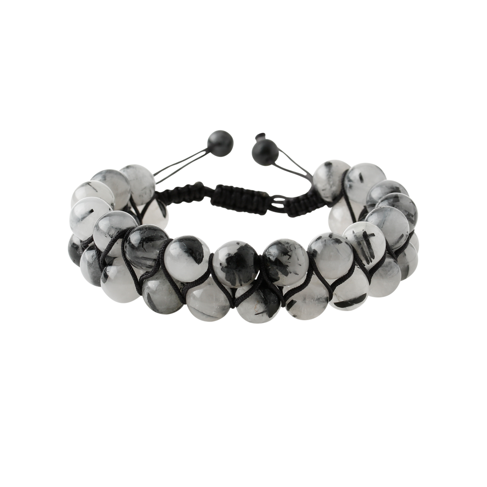 สร้อยข้อมือหินธรรมชาติแบบมาคราเม่สองแถวควอตซ์รูไทเลต 8 มม.