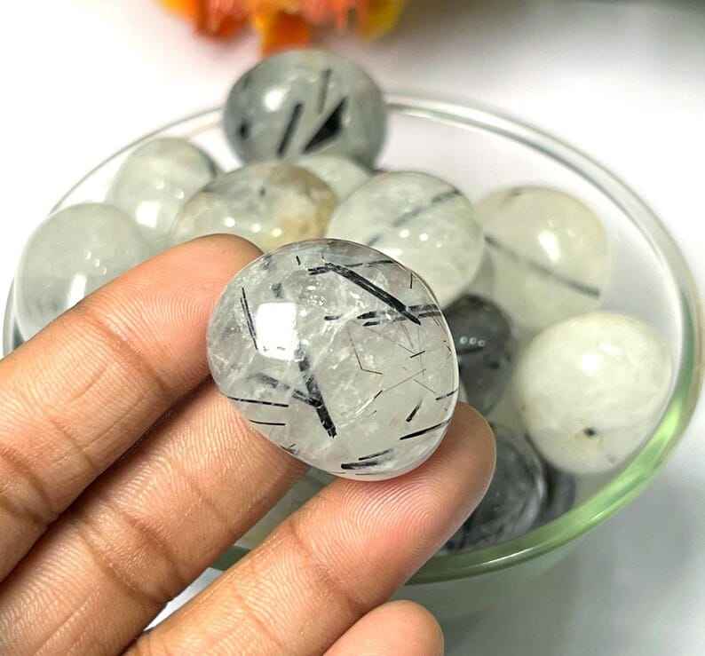 ควอตซ์รูไทล์สีดำธรรมชาติ หินควอตซ์รูไทล์สีดำขัดเงา งานฝีมือพื้นบ้านสำหรับตกแต่งบ้าน
