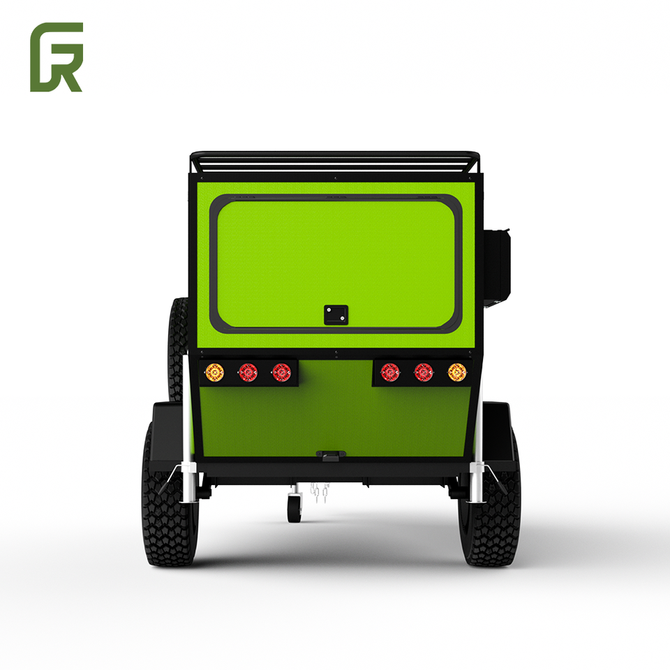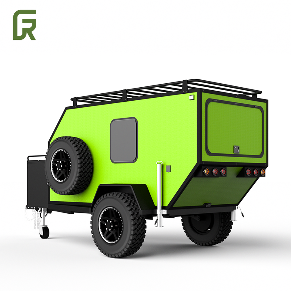รถพ่วงไฟเบอร์กลาสคาราวานขนาดเล็ก RV สำหรับตั้งแคมป์ออฟโร้ดตั้งแคมป์น้ำหนักเบาพร้อมห้องน้ำ