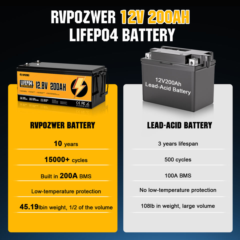 แบตเตอรี่ Rvpozwer 12V 200Ah แบบกำหนดเองสำหรับพลังงานแสงอาทิตย์ LiFePO4 4000 รอบ แบตเตอรี่แบบ Deep Cycle พร้อมการรับประกัน 3 ปี สำหรับระบบกักเก็บพลังงานแสงอาทิตย์