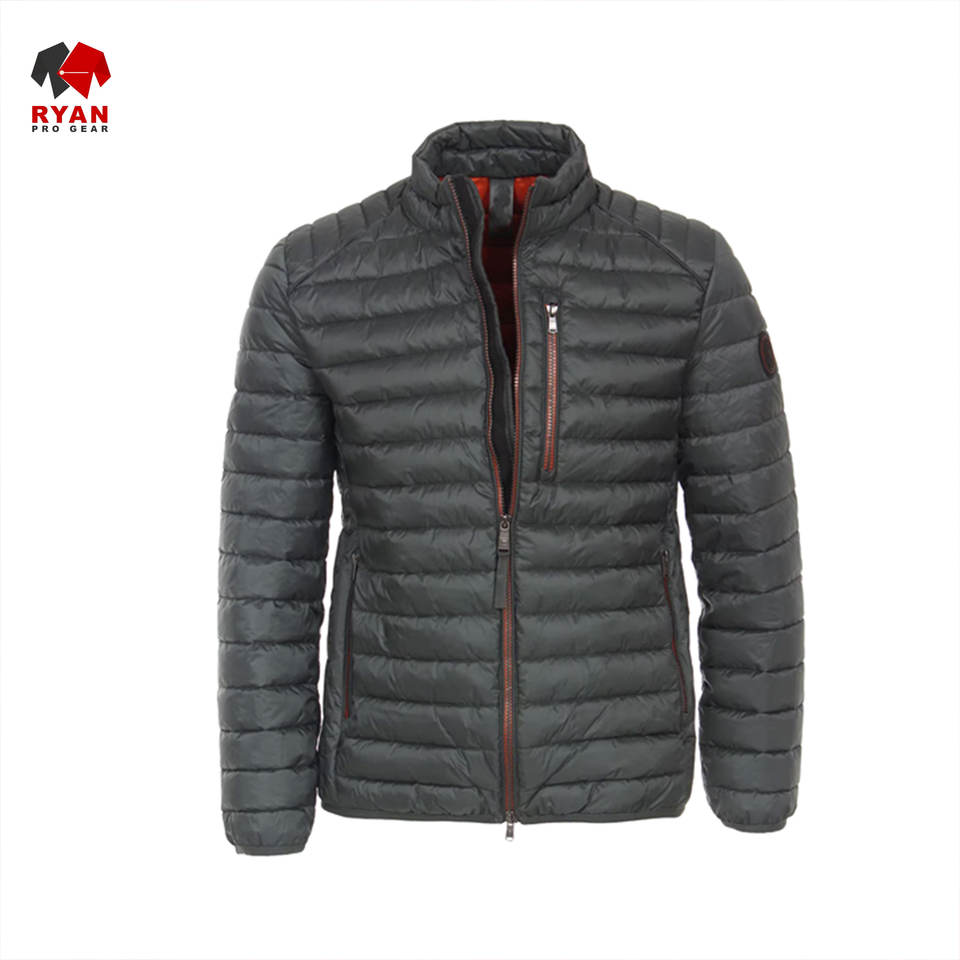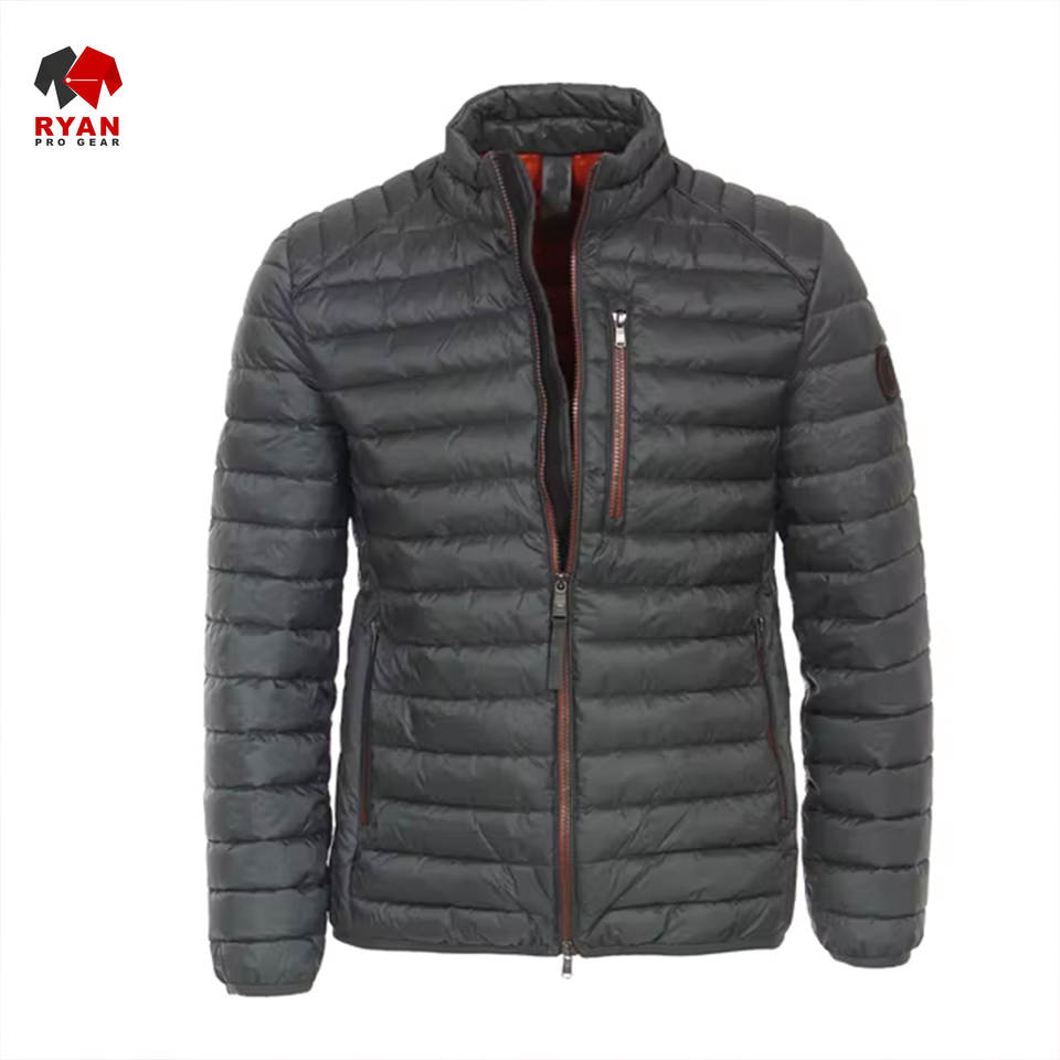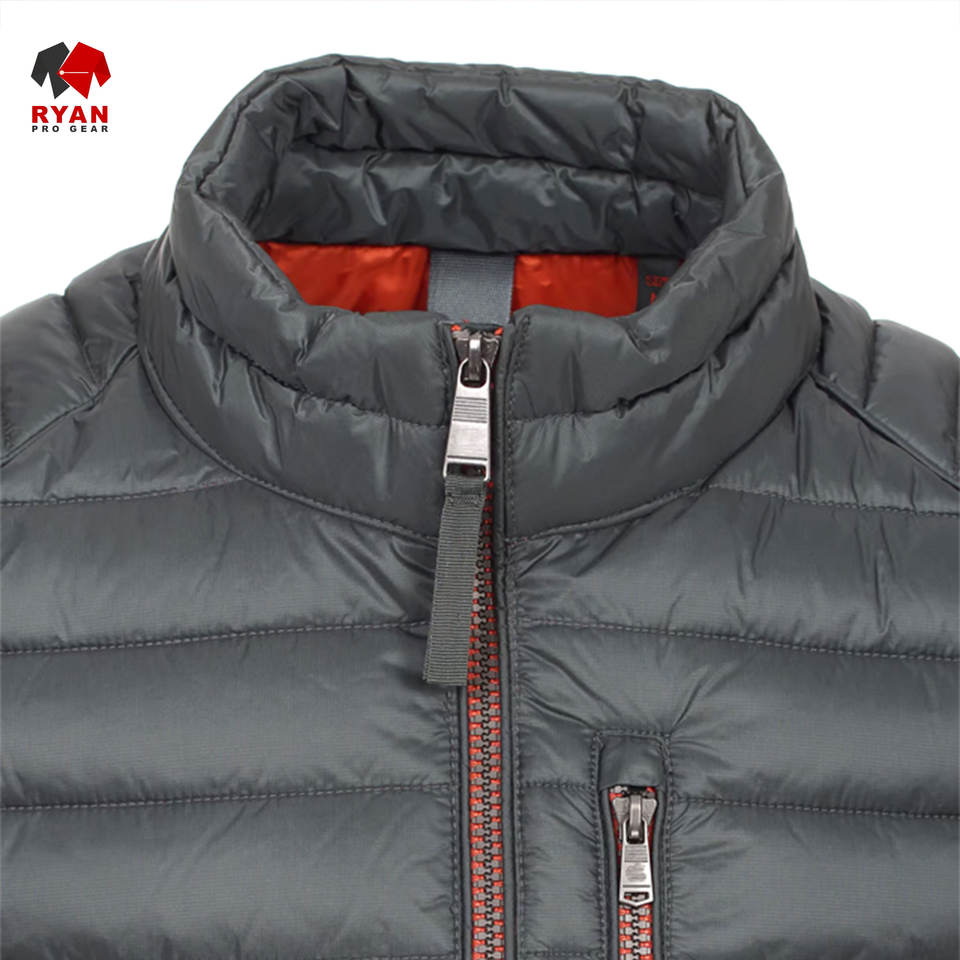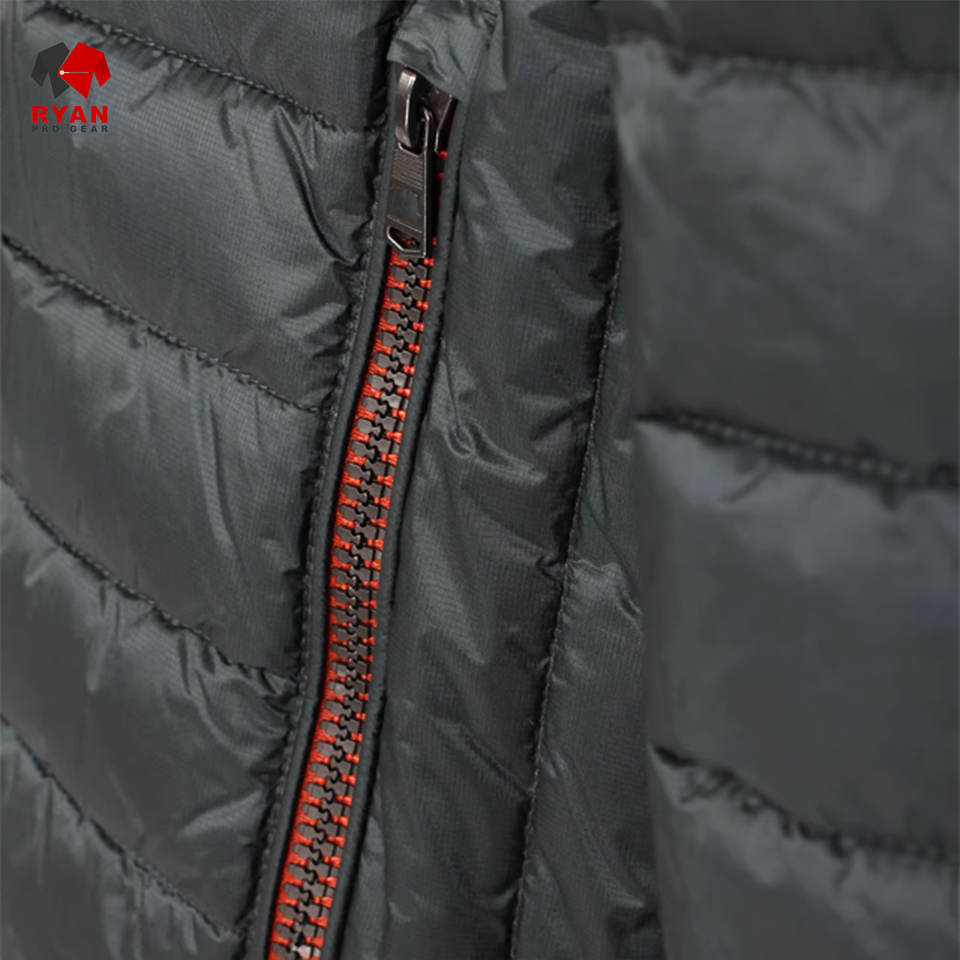 เสื้อแจ็คเก็ตพัฟเฟอร์แบบสั่งทำพิเศษสำหรับผู้ชาย ยี่ห้อ Ryan Pro Gear ผลิตจากผ้าระบายอากาศได้ดี พร้อมโลโก้แบบกำหนดเองและซิปปิด