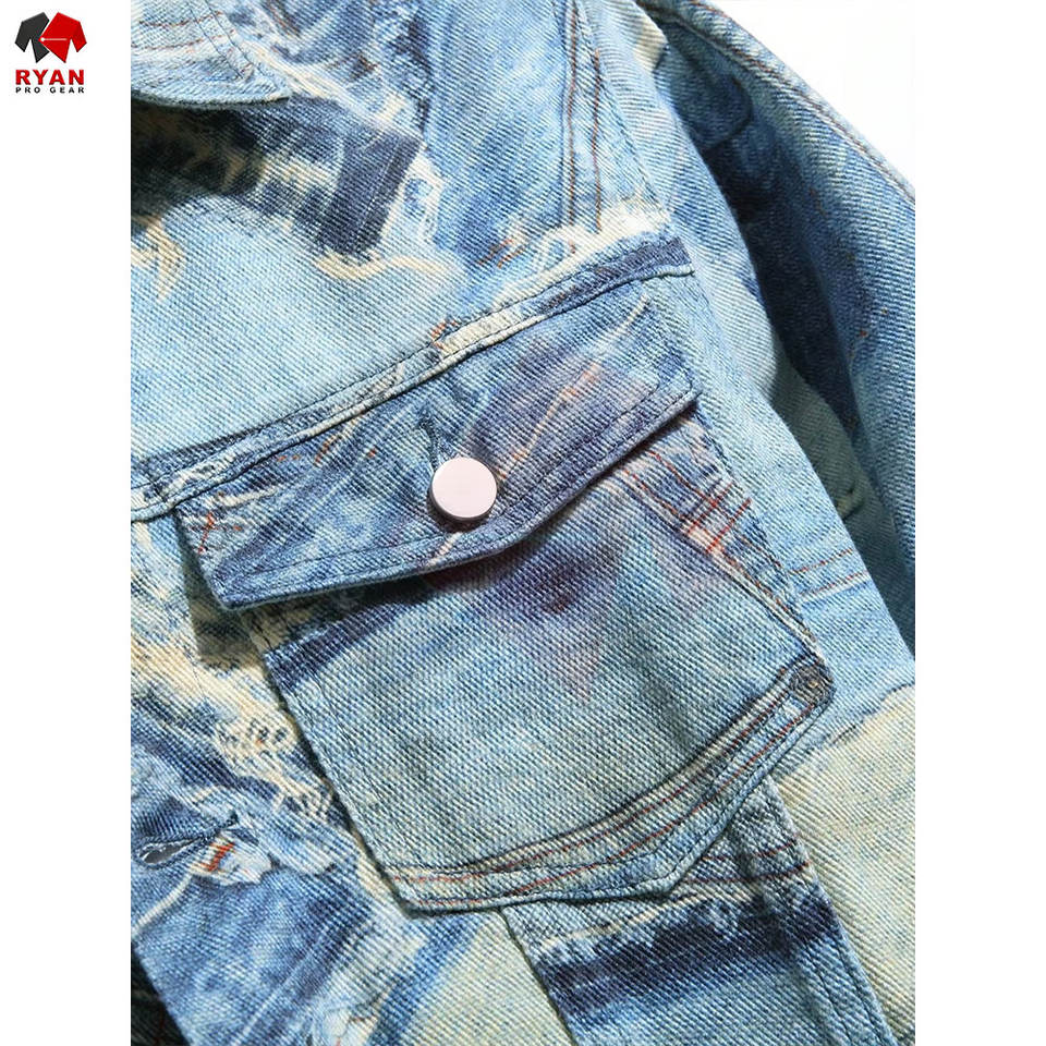 แจ็คเก็ตยีนส์ผู้ชาย Ryan Pro Gear แบบสั่งทำพิเศษ ผ้าระบายอากาศ ป้องกันรอยยับ พร้อมโลโก้สั่งทำ ODM OEM