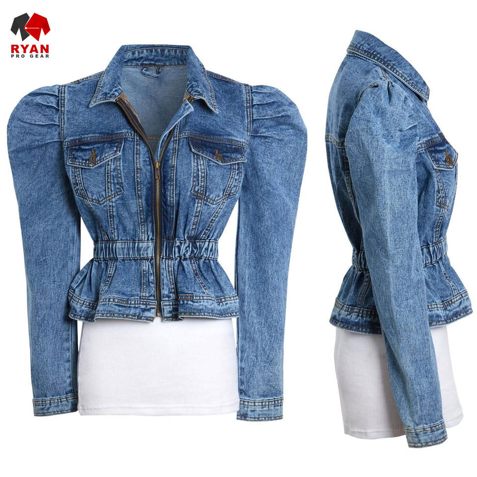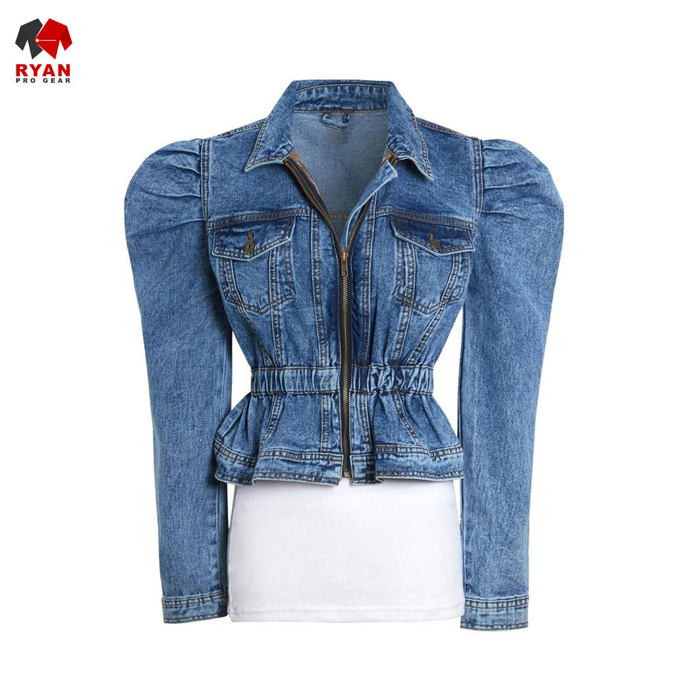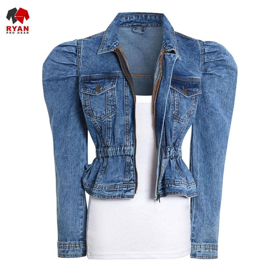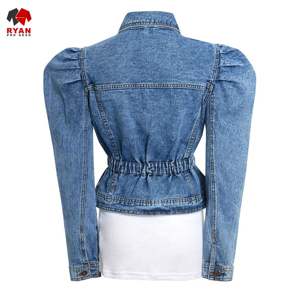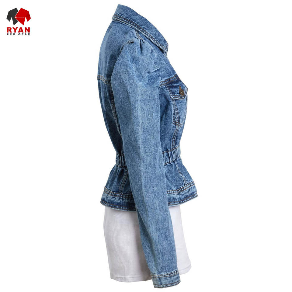 Ryan เสื้อแจ็กเก็ตยีนส์สำหรับผู้หญิงผ้าสวมใส่สบายระบายอากาศได้ดีพร้อมโลโก้ออกแบบได้ตามต้องการ