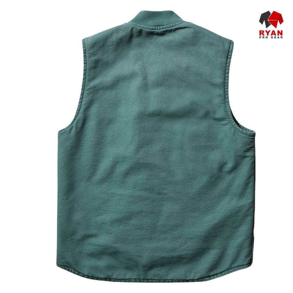 เสื้อกั๊กยีนส์แบบสั่งทำพิเศษสำหรับผู้ชาย ยี่ห้อ Ryan Pro Gear ปิดด้วยซิป ผ้าระบายอากาศได้ดี พร้อมโลโก้แบบสั่งทำ