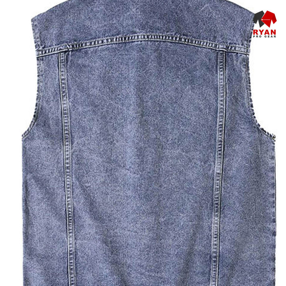 เสื้อกั๊กยีนส์แบบกำหนดเองสำหรับผู้ชาย ยี่ห้อ Ryan Pro Gear ผ้าระบายอากาศได้ดี พร้อมโลโก้แบบกำหนดเอง ดีไซน์ ODM