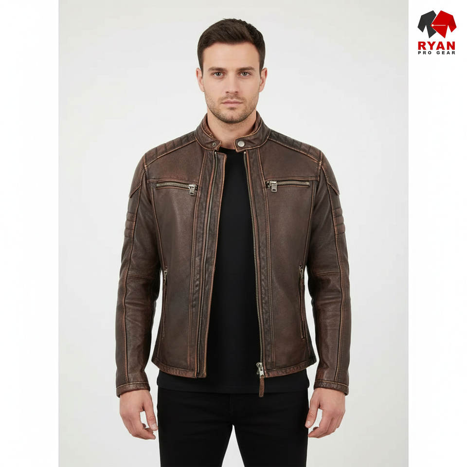 Ryan เสื้อแจ็กเก็ตหนังสำหรับผู้ชายผ้าระบายอากาศได้ดีดีไซน์ตามสั่งพิมพ์โลโก้ได้ตามต้องการ