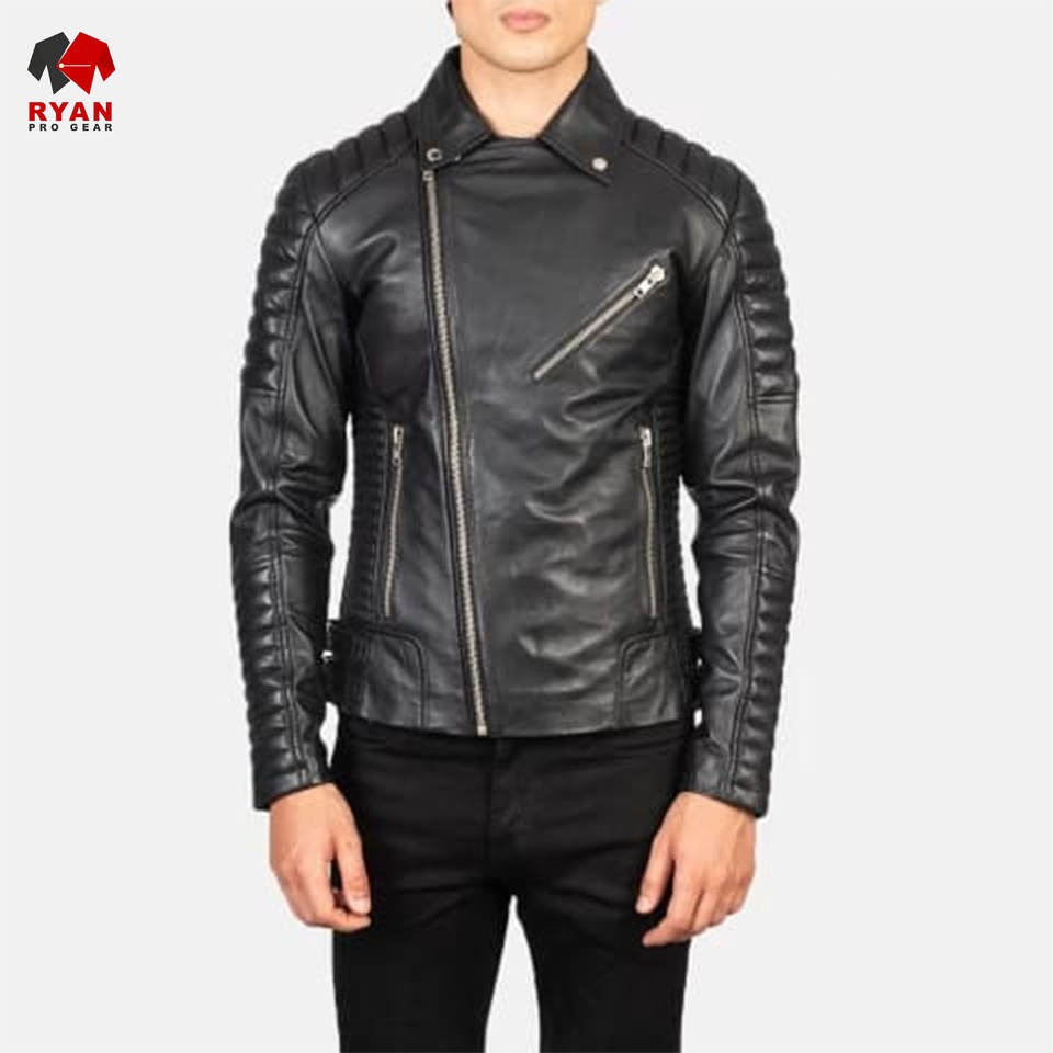 แจ็คเก็ตหนังผ้าระบายอากาศดีไซน์สั่งทำพิเศษสำหรับผู้ชาย ยี่ห้อ Ryan Pro Gear พร้อมบริการสกรีนโลโก้ตามแบบที่ต้องการ และดีไซน์กระเป๋า