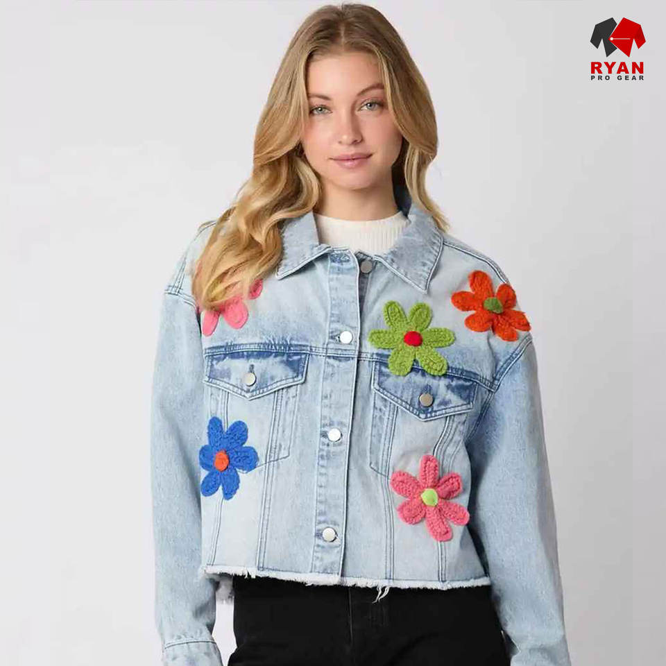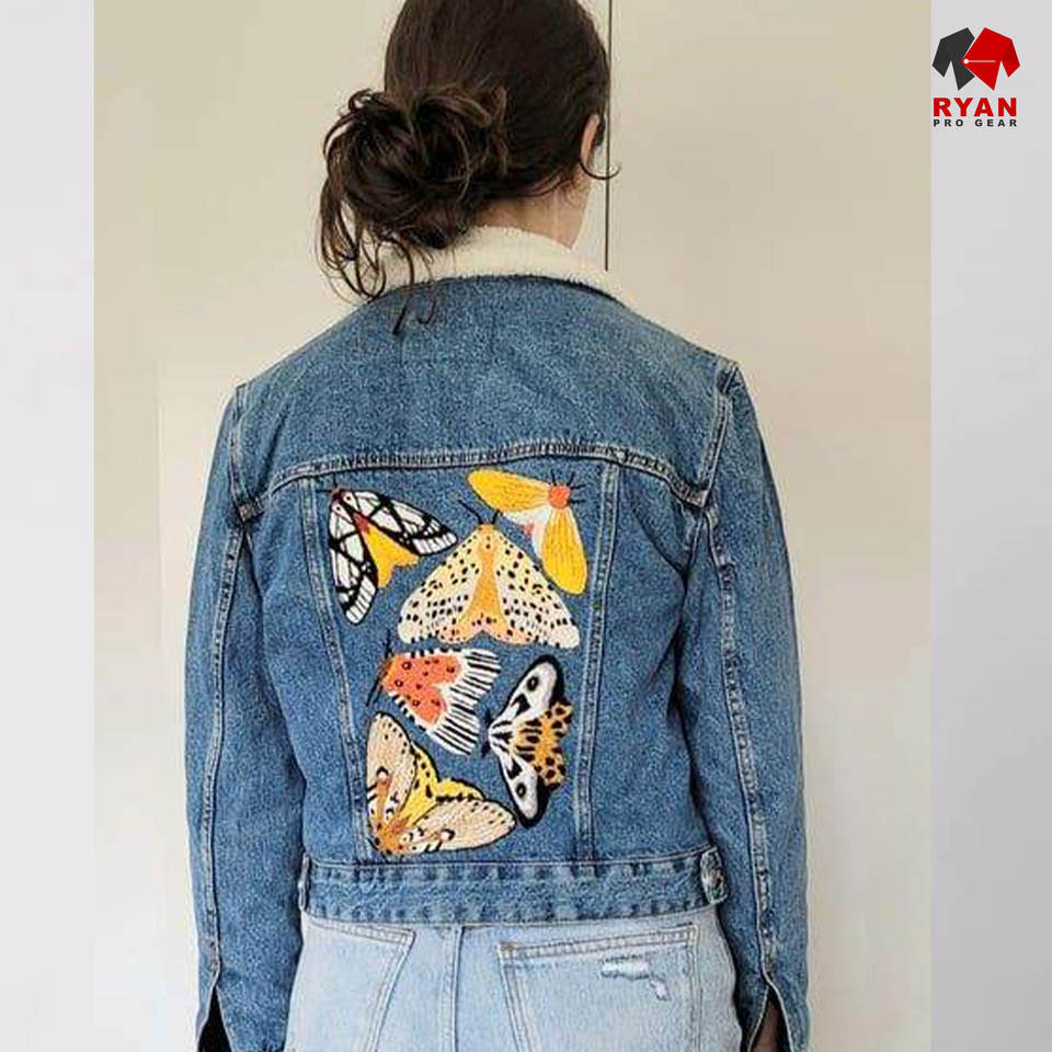 แจ็คเก็ตยีนส์ดีไซน์เฉพาะของ Ryan Pro Gear สำหรับผู้หญิง คุณภาพพรีเมียม ผ้าระบายอากาศได้ดี พร้อมโลโก้แบบกำหนดเอง