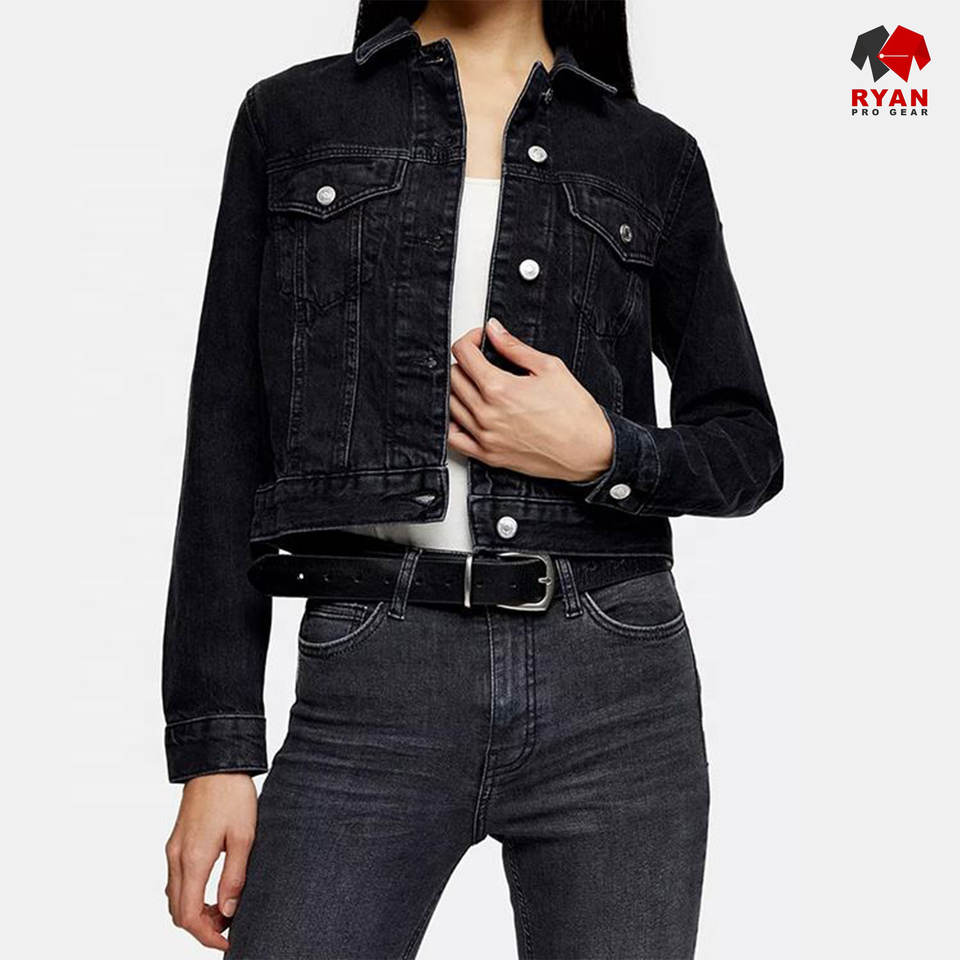 แจ็คเก็ตยีนส์ดีไซน์เฉพาะของ Ryan Pro Gear สำหรับผู้หญิง ทรงปกติ ผ้าระบายอากาศ พร้อมโลโก้แบบกำหนดเอง