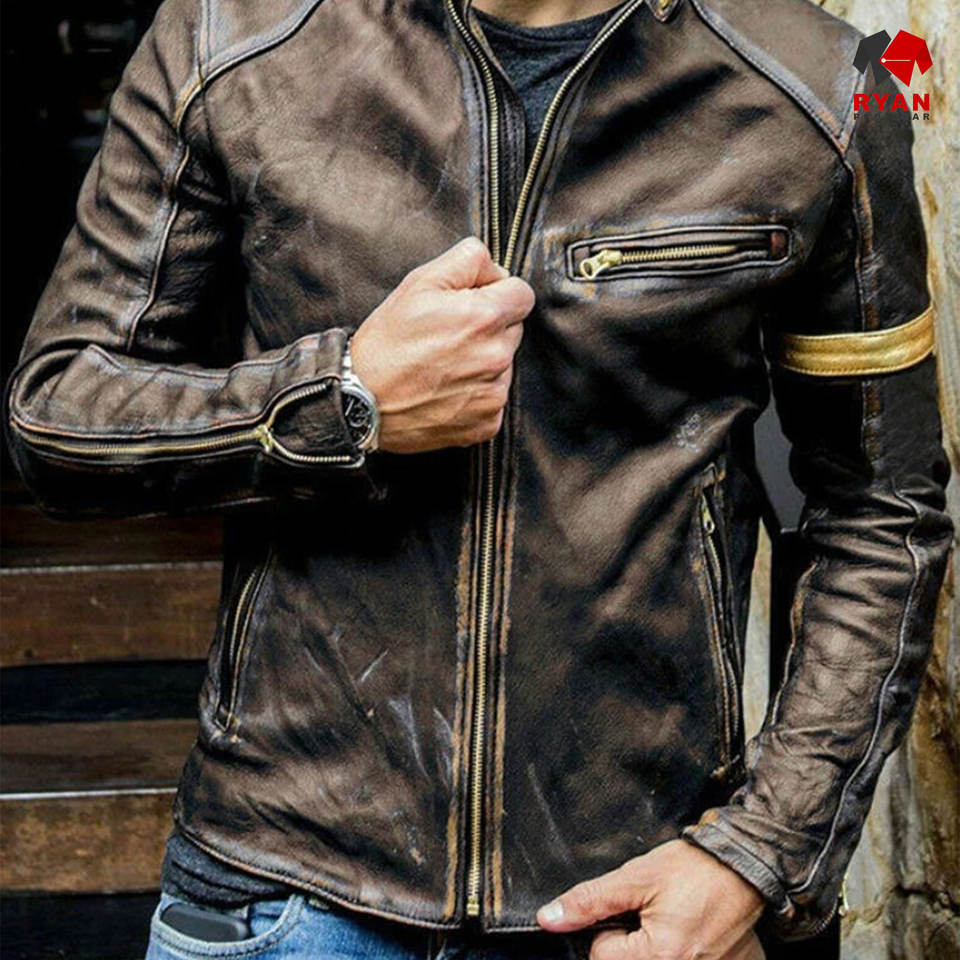 แจ็คเก็ตหนังดีไซน์สั่งทำพิเศษสำหรับผู้ชายจาก Ryan Pro Gear เนื้อผ้าสวมใส่สบาย ระบายอากาศได้ดี พร้อมโลโก้สั่งทำ