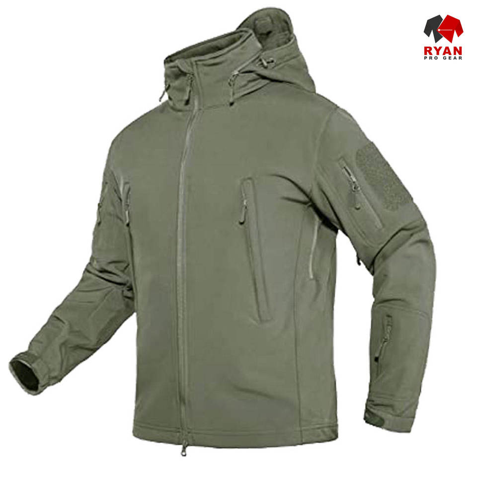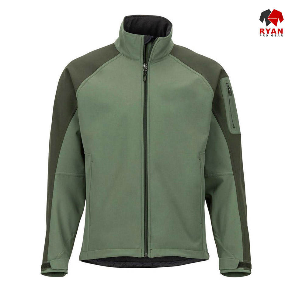แจ็คเก็ตซอฟต์เชลล์ดีไซน์พิเศษสำหรับผู้ชาย ยี่ห้อ Ryan Pro Gear แบบซิป พร้อมโลโก้สั่งทำพิเศษ ทรงปกติ