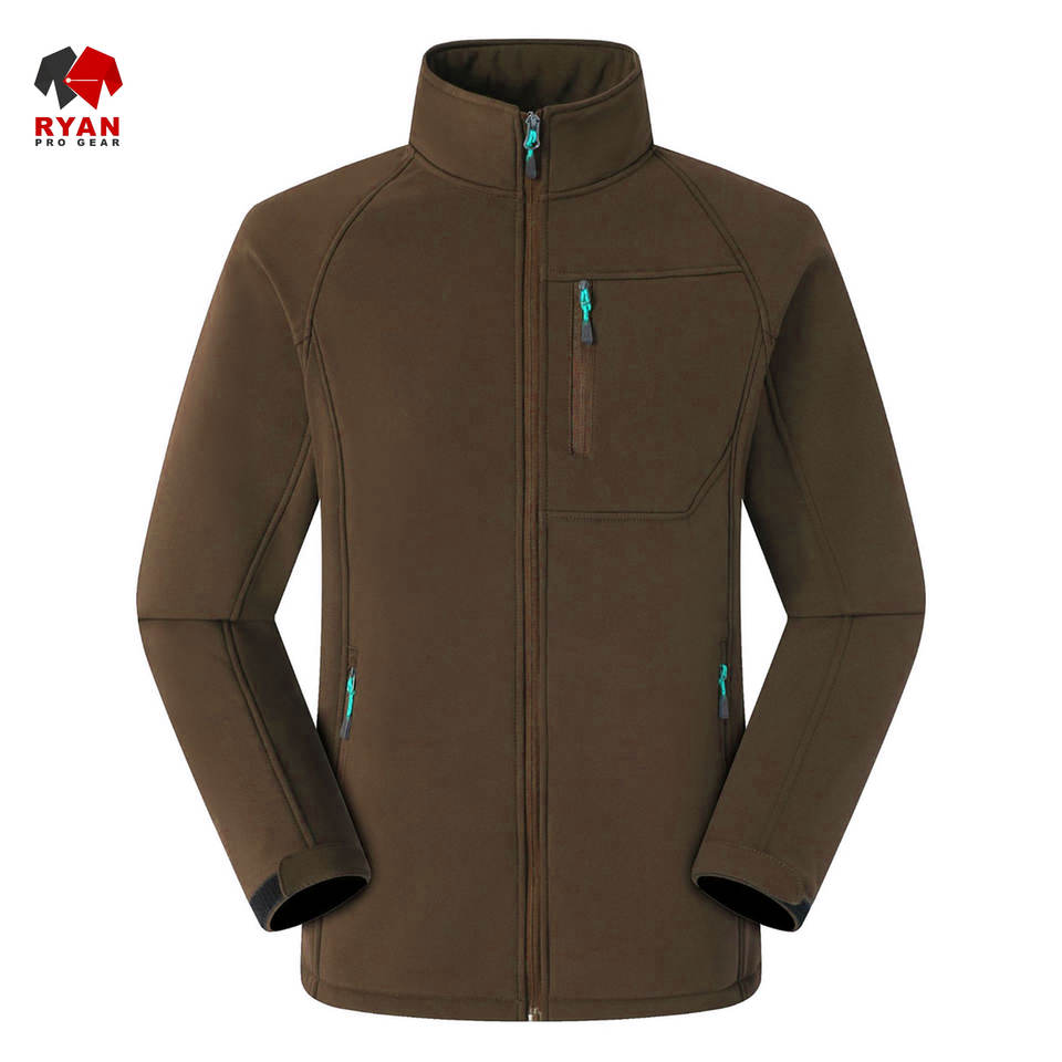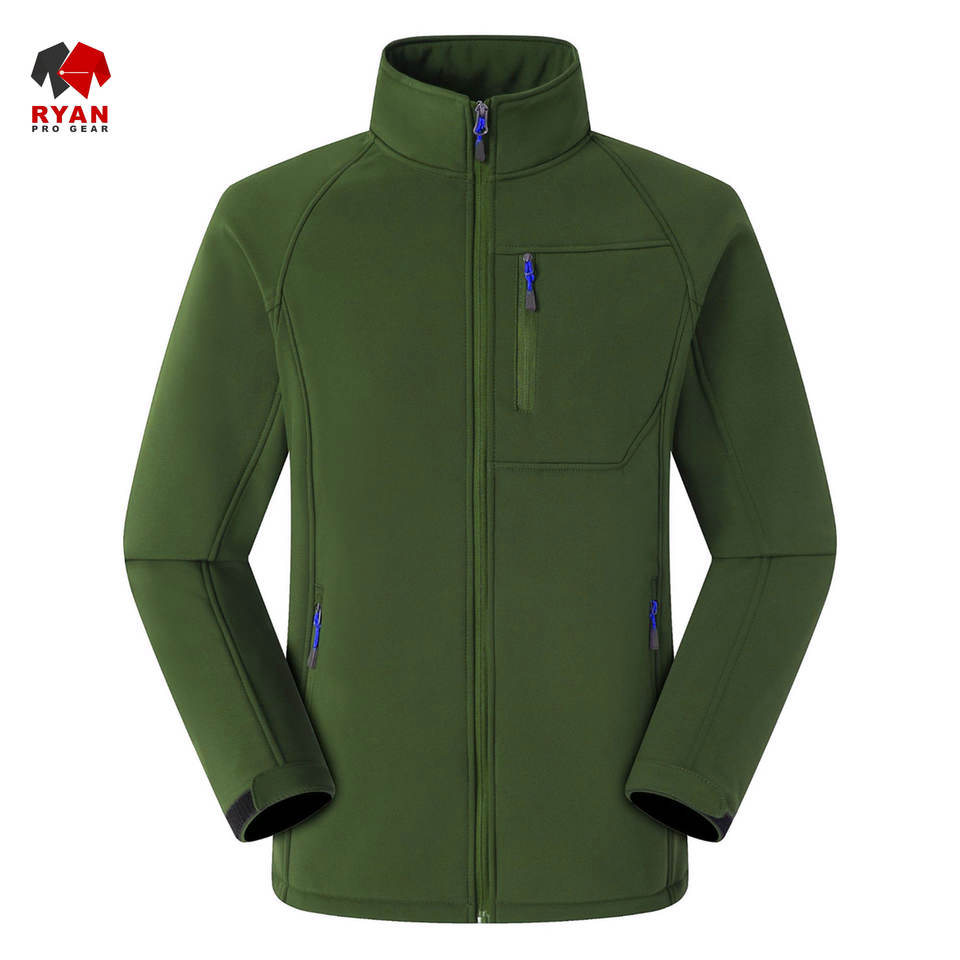 แจ็คเก็ตซอฟต์เชลล์ดีไซน์พิเศษสำหรับผู้ชายจาก Ryan Pro Gear เนื้อผ้านุ่มสบาย ปิดด้วยซิป พร้อมโลโก้แบบกำหนดเองและดีไซน์กระเป๋า