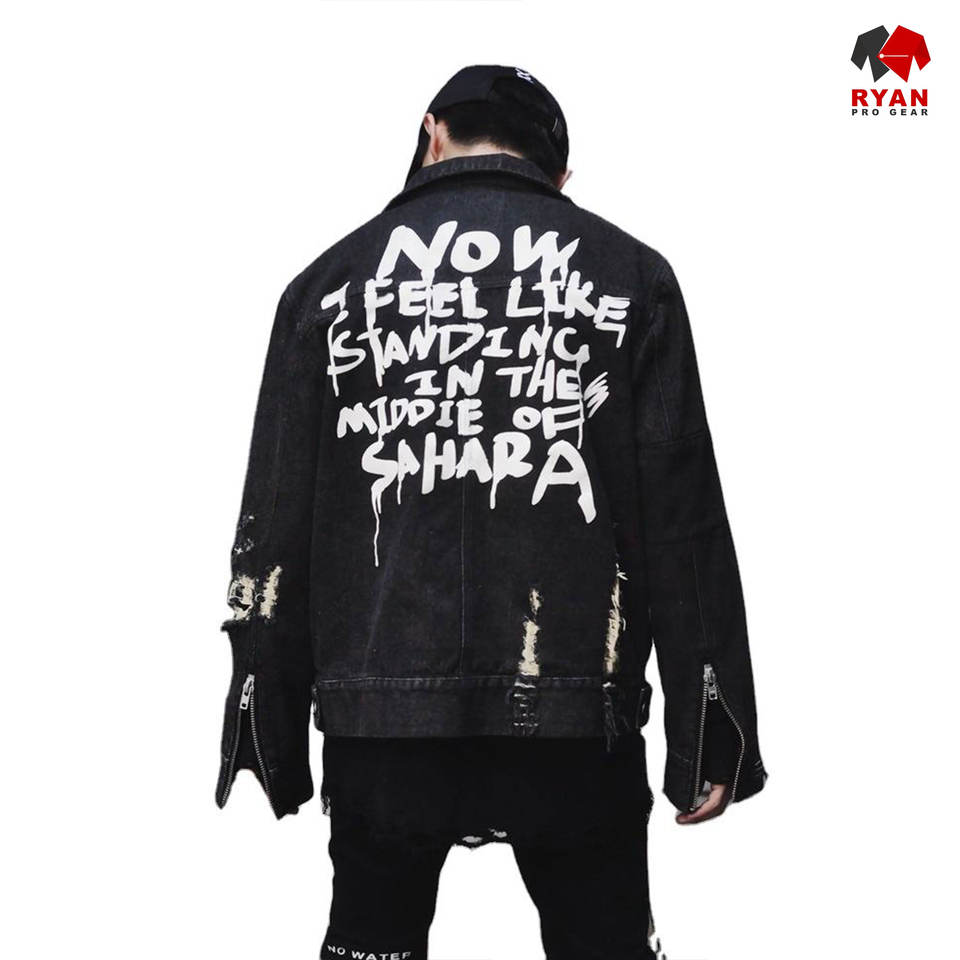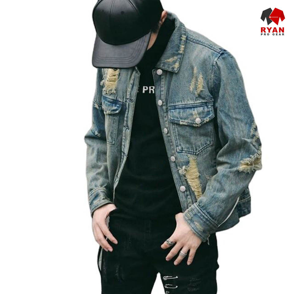 แจ็คเก็ตยีนส์ผู้ชายแบบกำหนดเองของ Ryan Pro Gear สวมใส่สบาย ปิดด้วยกระดุม โลโก้แบบกำหนดเอง สไตล์เรียบง่าย บริการ ODM OEM