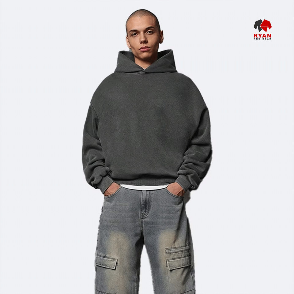 เสื้อฮู้ดดี้ผู้ชาย Ryan Pro Gear ดีไซน์กระเป๋า พร้อมโลโก้สั่งทำด้านหน้า ผ้าฟลีซคอตตอน 100% สีพื้น ใส่สบายสำหรับฤดูหนาว